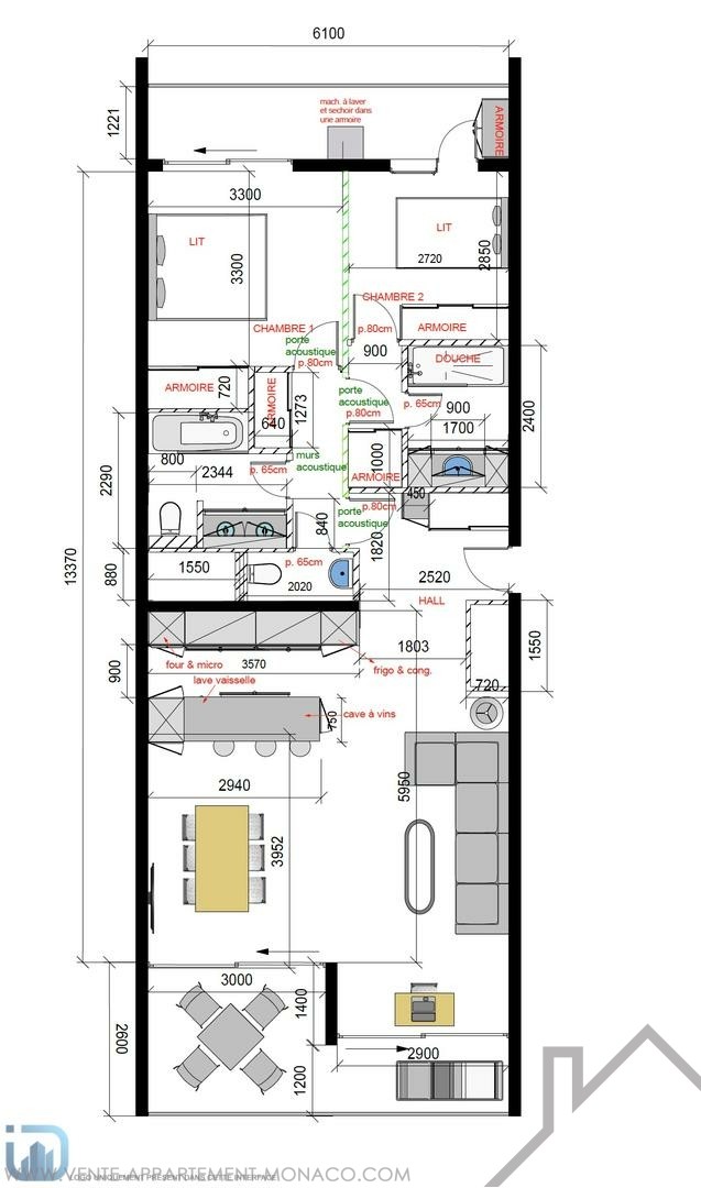 È composto da un ingresso, un soggiorno con accesso a una terrazza vista mare e una cucina attrezzata, due camere da letto con spogliatoi, un bagno completo, un bagno con doccia e un bagno per gli ospiti.