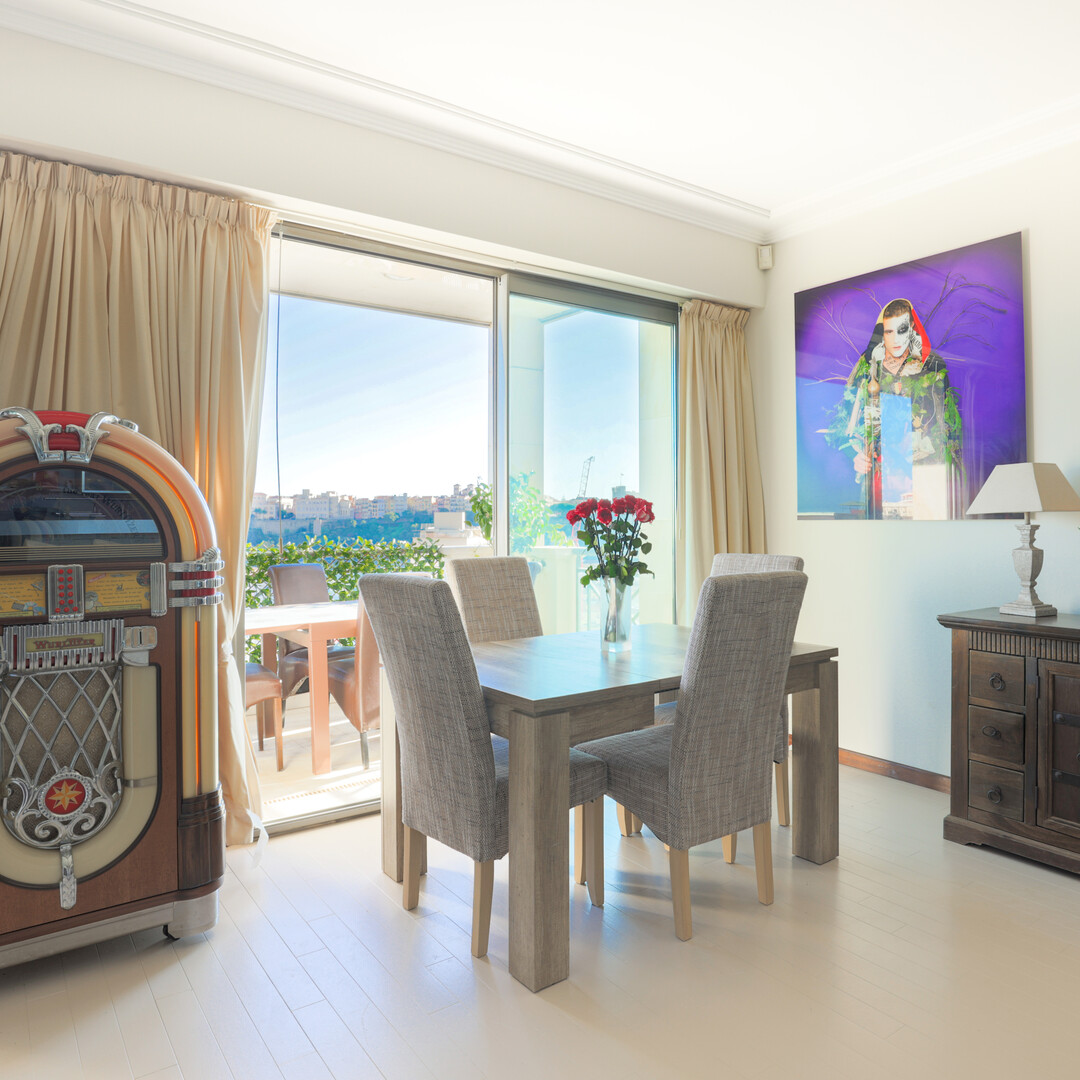 L'appartamento si affaccia sul porto di Monaco e offre una bella vista sul mare e sul Palazzo del Principe.
