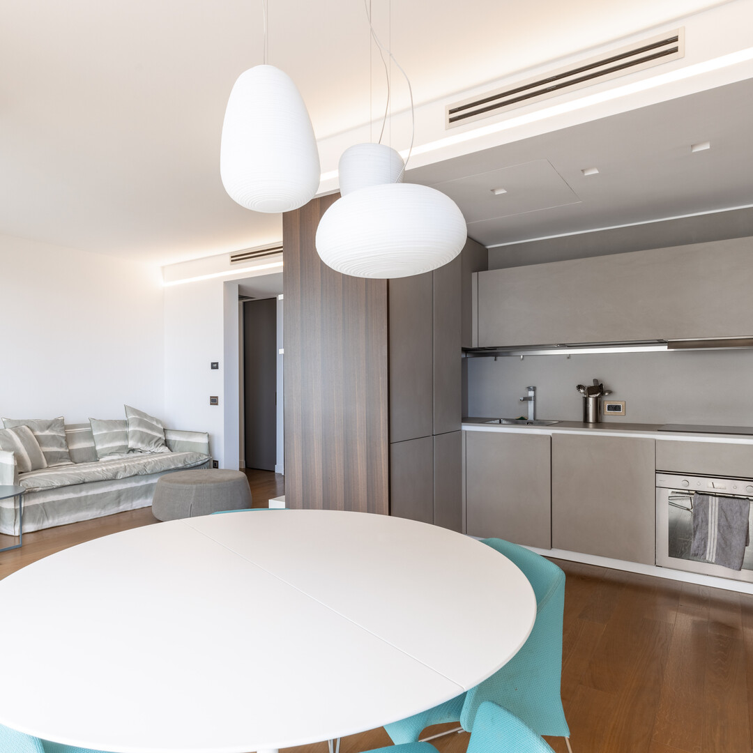 Appartamento trilocale ristrutturato con finiture di pregio, situato all’ottavo piano di un edificio moderno con portineria sul Boulevard du Larvotto. A pochi passi dalle nuove spiagge e dai negozi, accessibili anche dal retro dell’edificio.