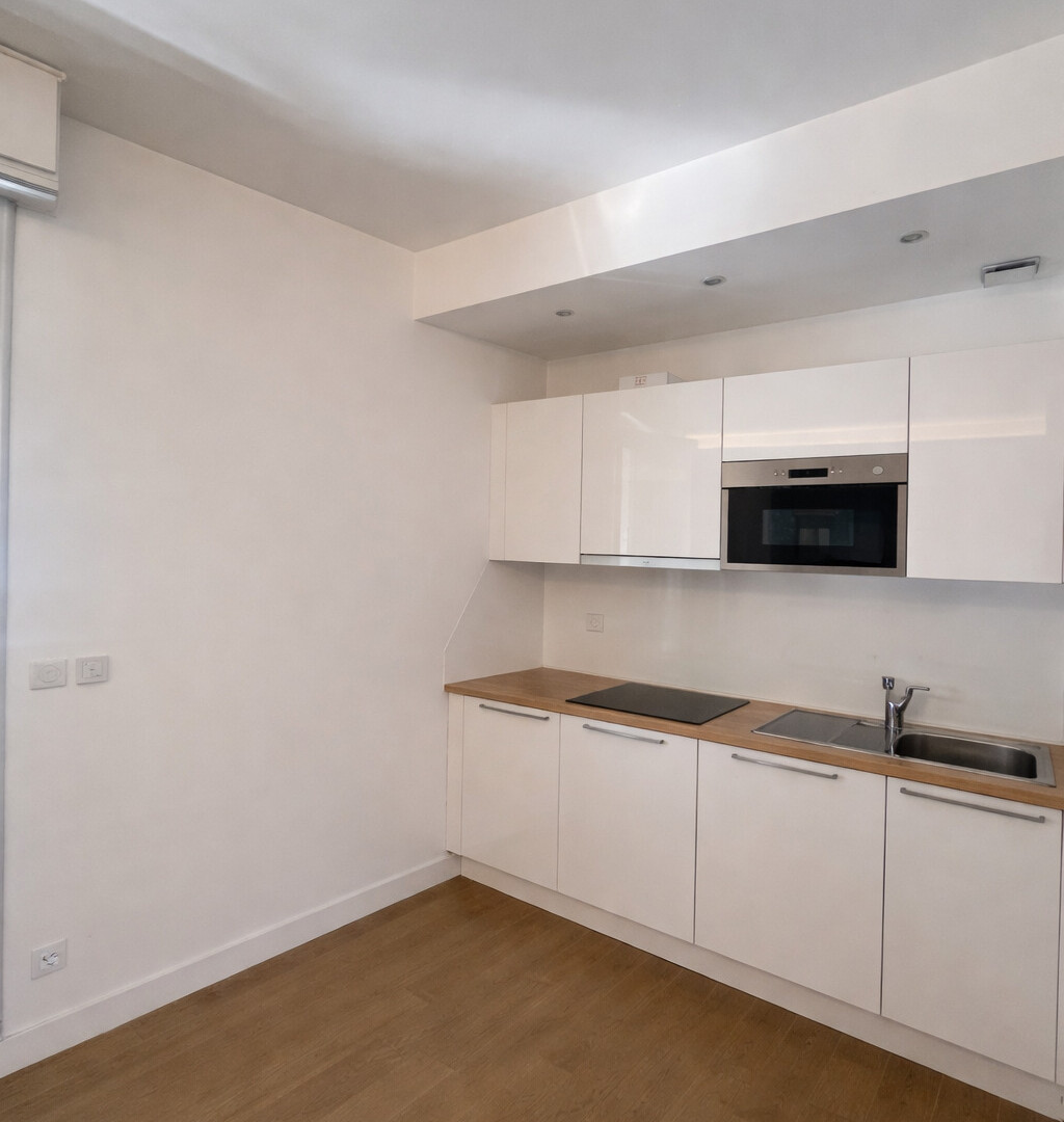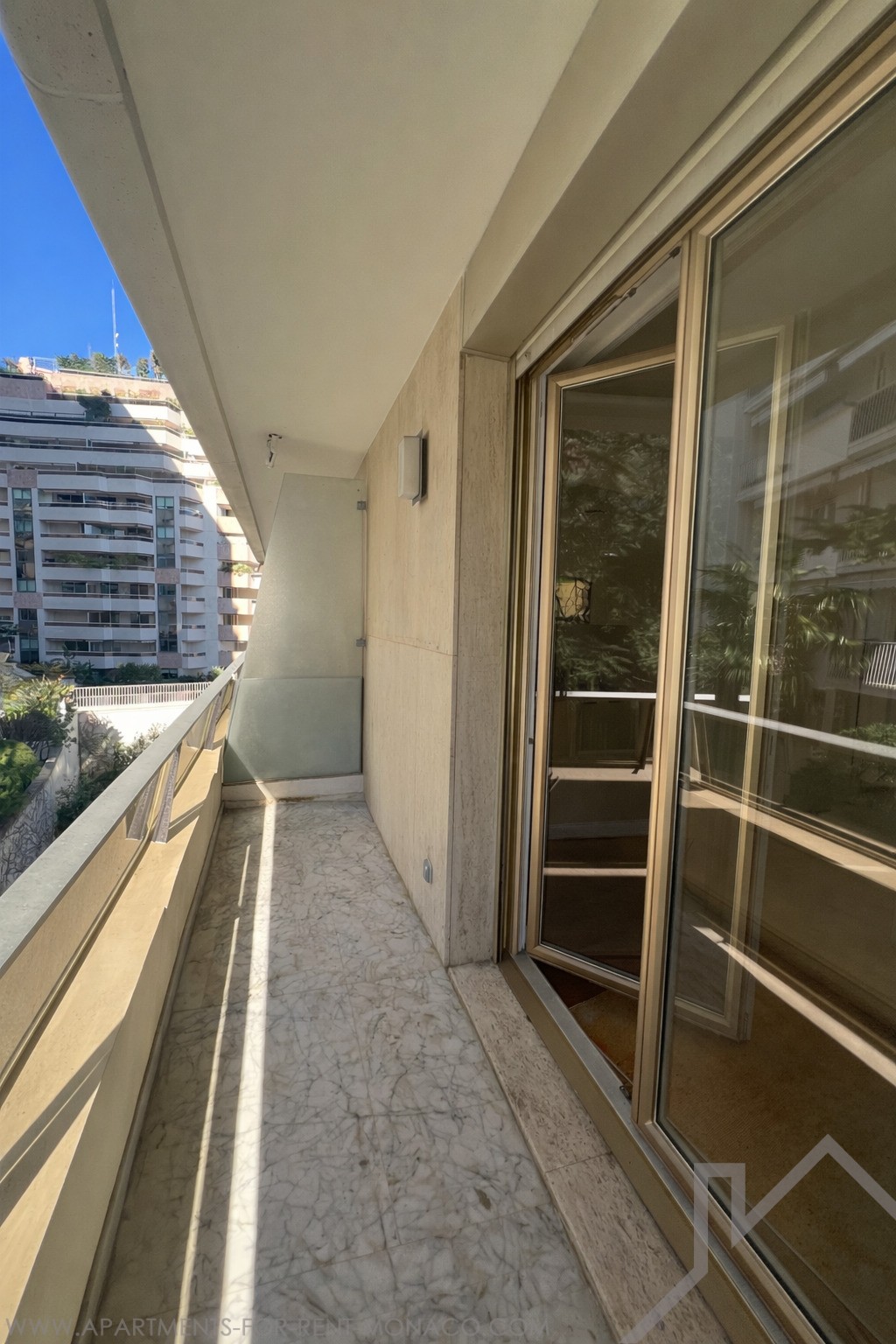 Quartiere tranquillo Jardin Exotique, residence “Bel Horizon”, con portineria, monolocale dotato di aria condizionata e balcone.