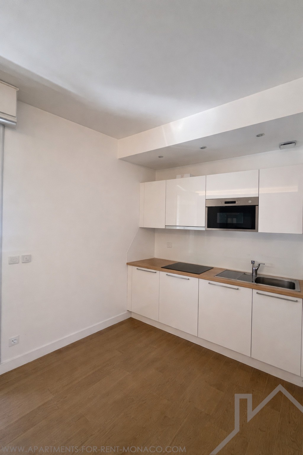 Quartiere tranquillo Jardin Exotique, residence “Bel Horizon”, con portineria, monolocale dotato di aria condizionata e balcone.