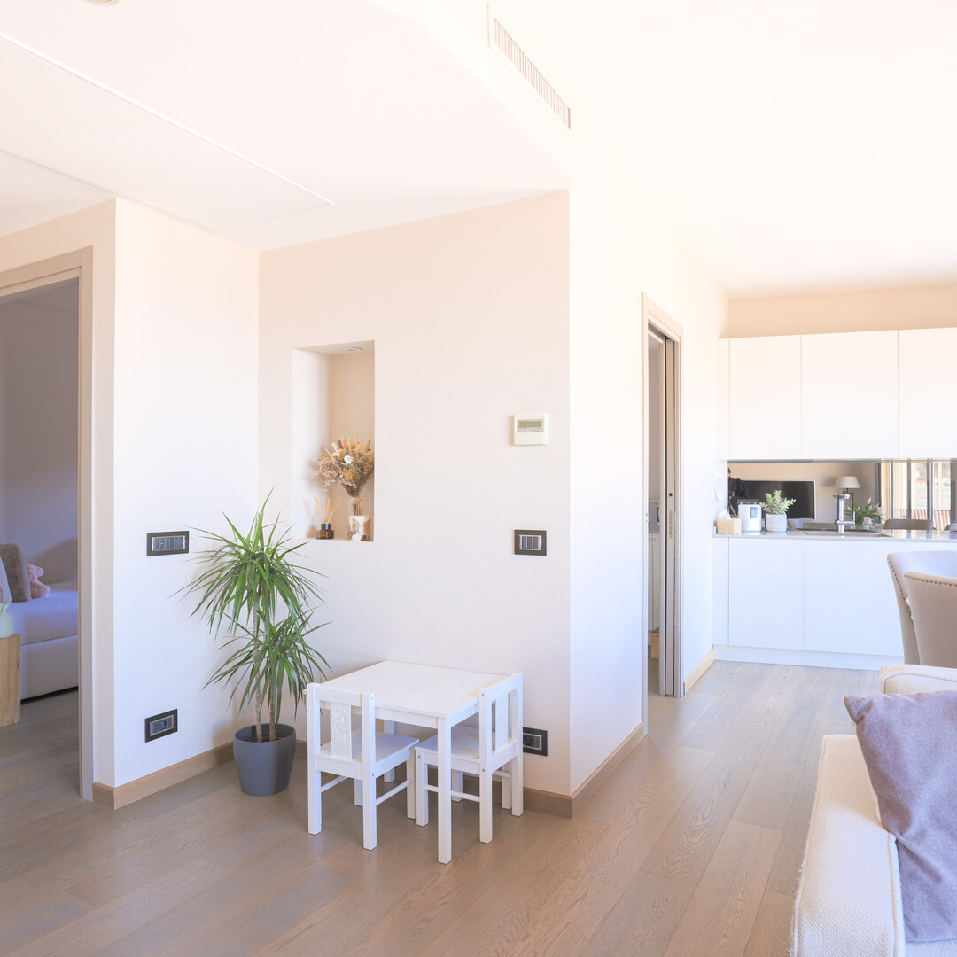 Questo appartamento di 4 locali è composto da un bellissimo ingresso che conduce al soggiorno / sala da pranzo, una cucina aperta completamente attrezzata e una lavanderia, una camera matrimoniale con il suo bagno, una camera da letto con bagno privato con doccia e una terza camera da letto.
