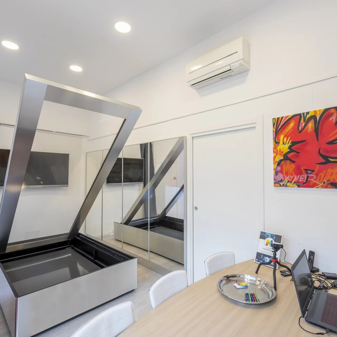 SUPERFICIE : Al piano terra 45 m²: spazio commerciale, ufficio, bagni uomo e donna.