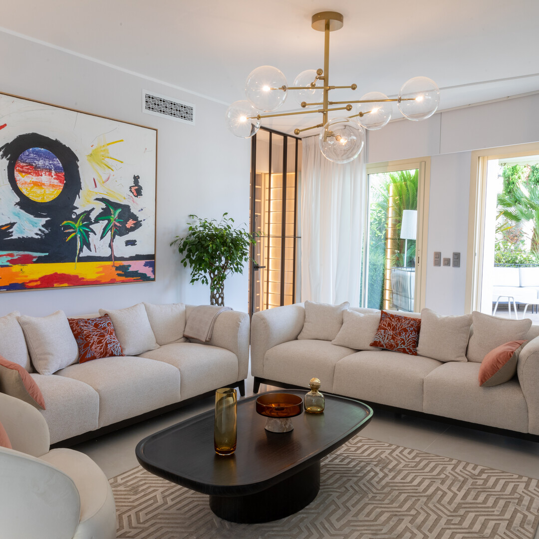 L'ampio spazio abitativo si apre su una magnifica terrazza di 95 m², ideale per godere appieno del clima mediterraneo con le sue zone pranzo e solarium.