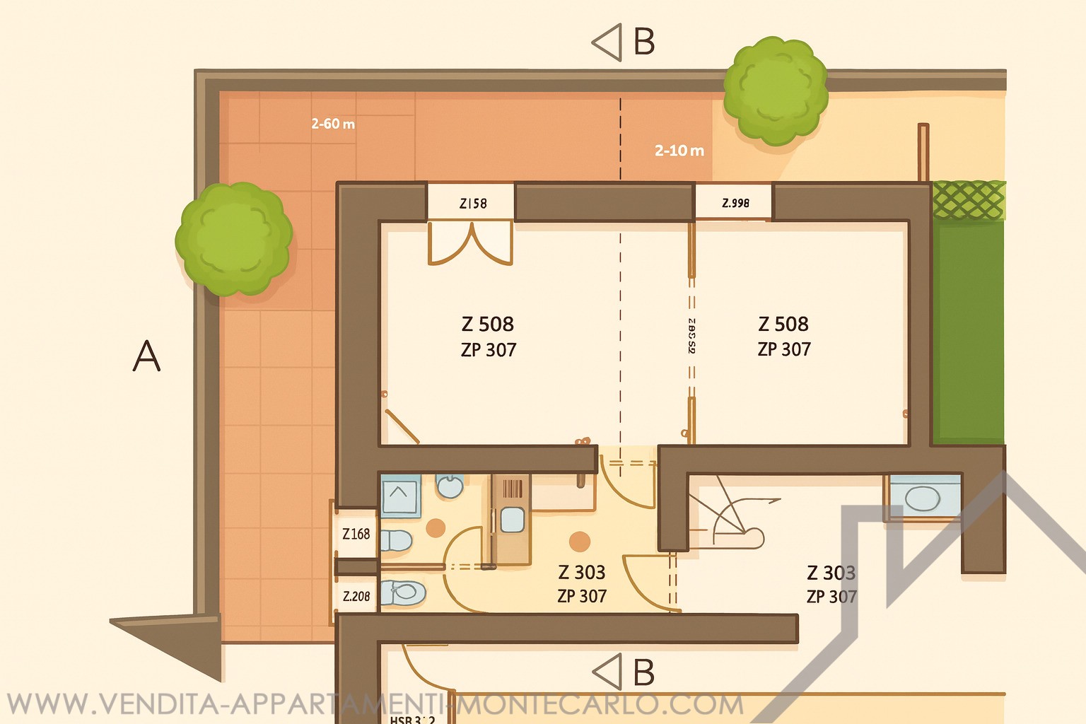 Situato nel cuore di Monte-Carlo, a pochi passi da tutti i servizi, questo luminoso bilocale soggetto alla Legge 1.235 offre un ottimo potenziale di ristrutturazione. In una zona tranquilla, gode di una piacevole vista sulla città e di una terrazza perimetrale.
