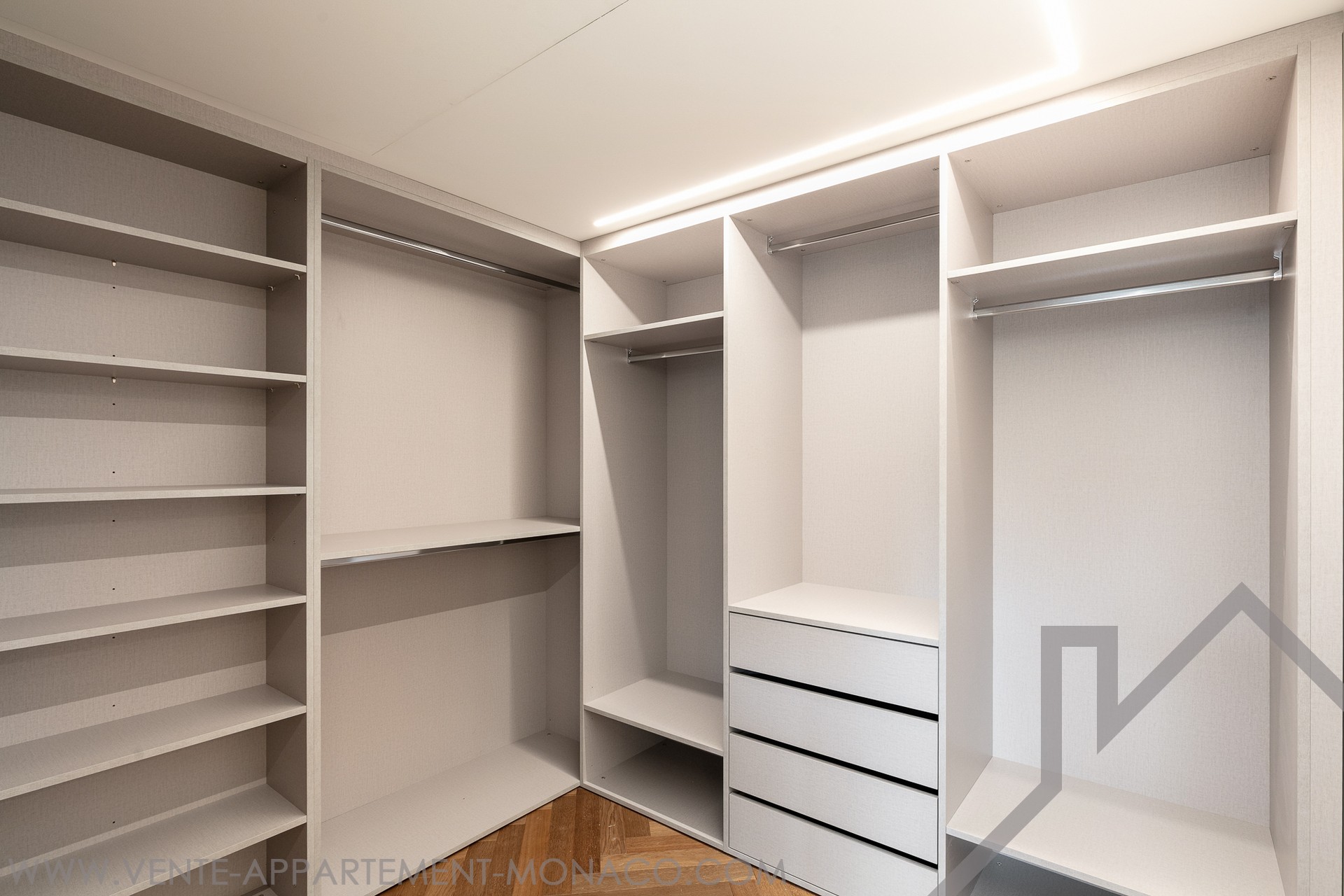 Composizione: un accogliente ingresso, un ampio soggiorno perfetto per ricevere ospiti o rilassarsi, una moderna cucina indipendente completamente attrezzata con lavanderia annessa, due camere da letto con bagno privato, ciascuna con armadi a muro e cabina armadio, un bagno per gli ospiti, un piacevole balcone con vista aperta sulla città, ideale per godersi l'atmosfera monegasca.