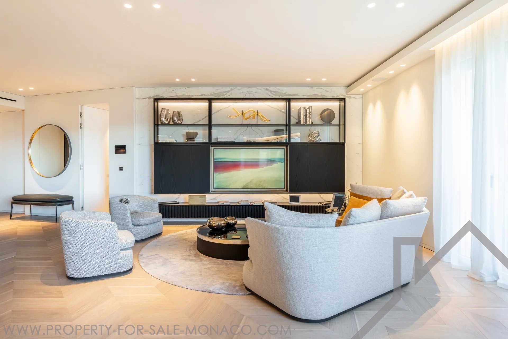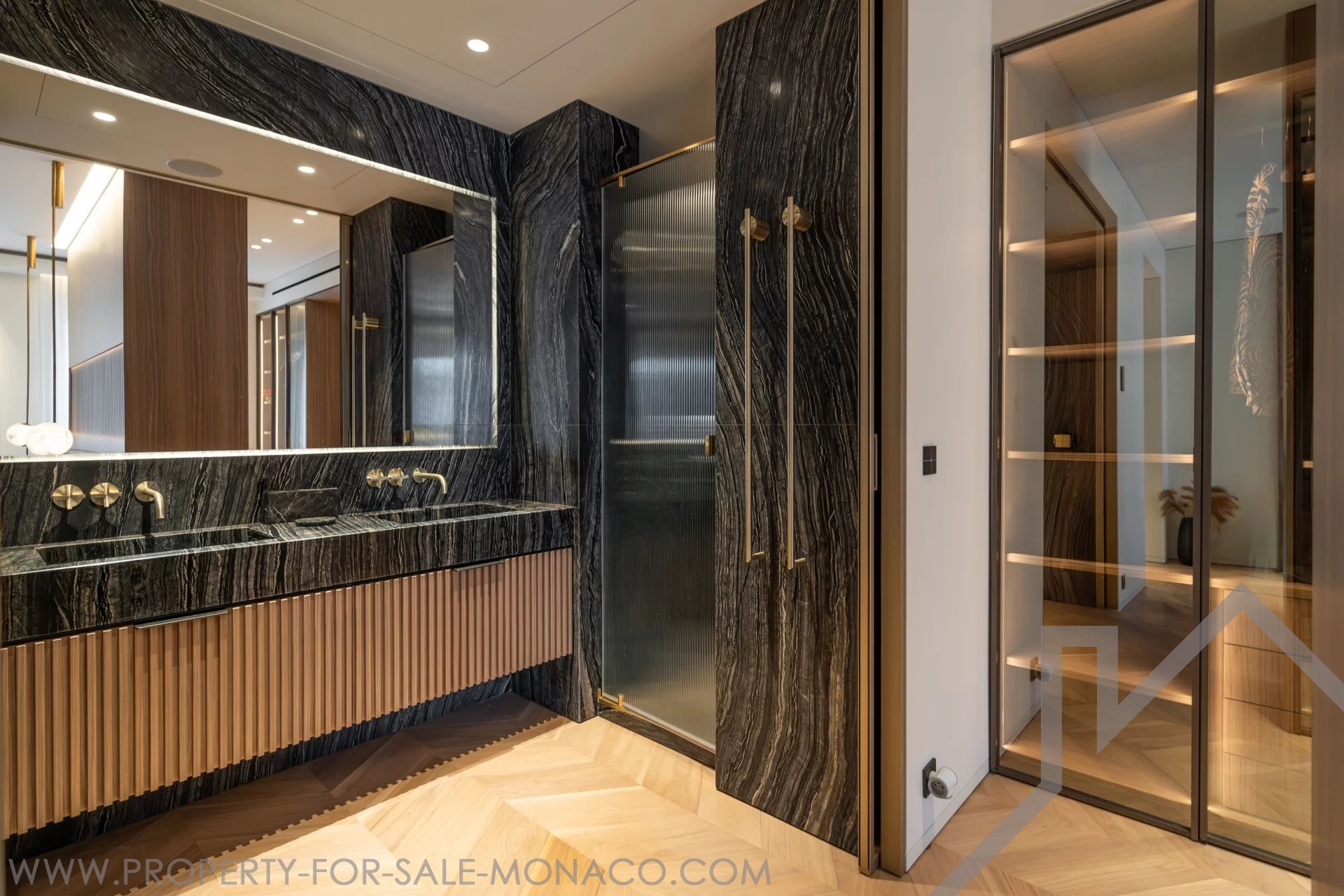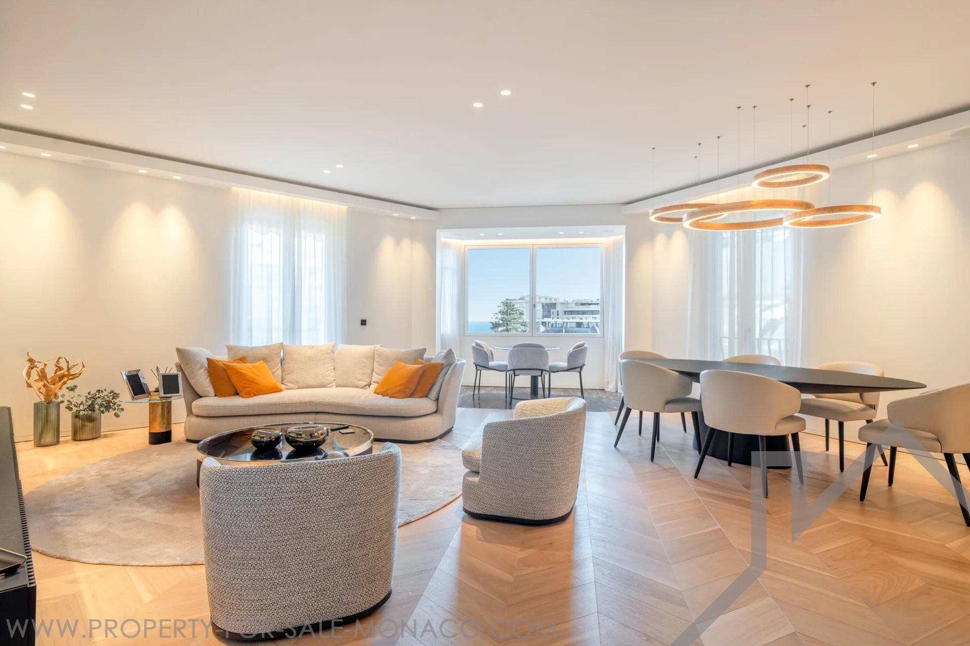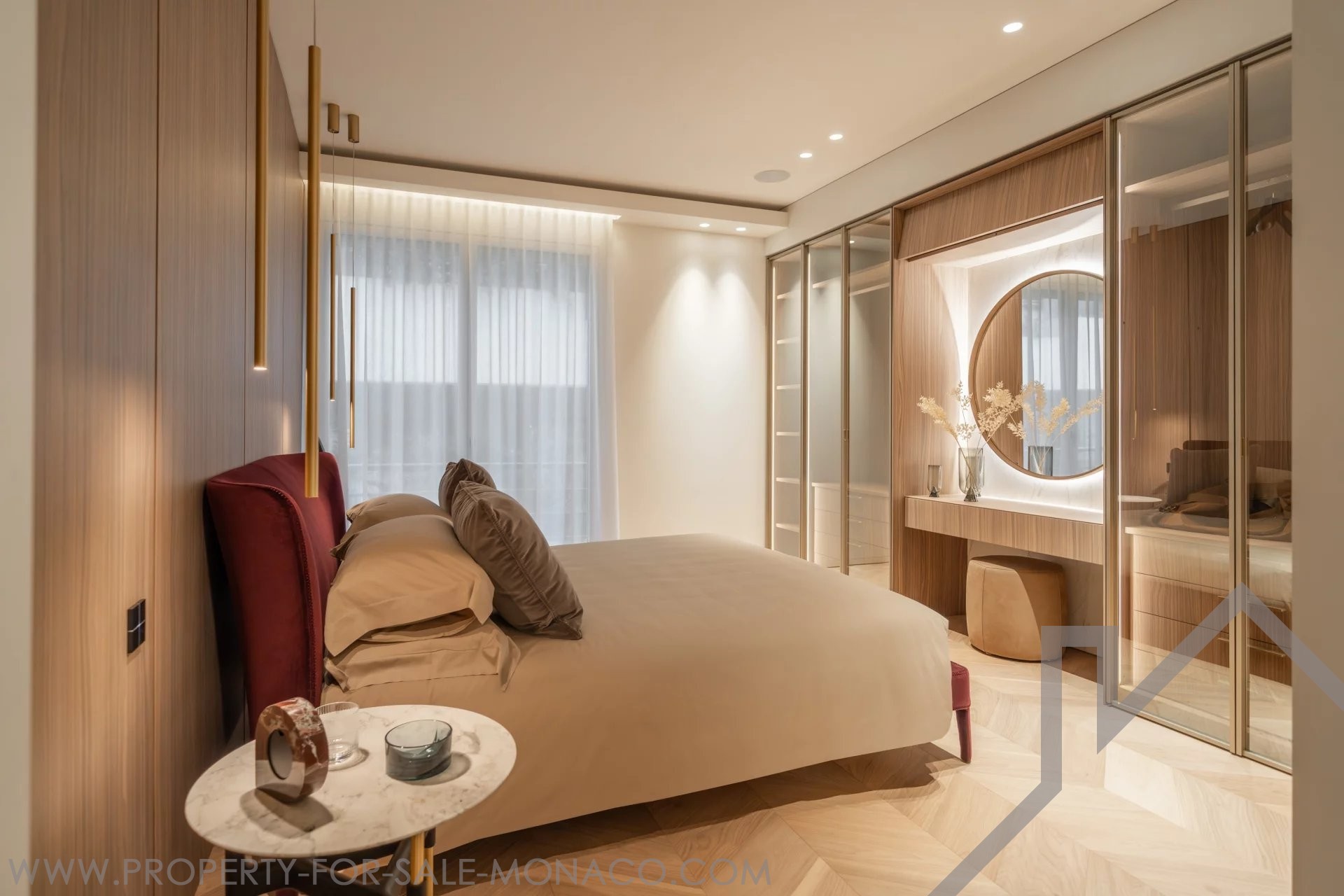 È composto da un ingresso, un luminoso soggiorno che si apre su un balcone con una piacevole vista sul Casinò e sui suoi giardini, una cucina semi-aperta e completamente attrezzata, una camera da letto principale con un ampio spogliatoio e un bagno con doccia completo, e due camere da letto, ognuna con il proprio spogliatoio e bagno con doccia.