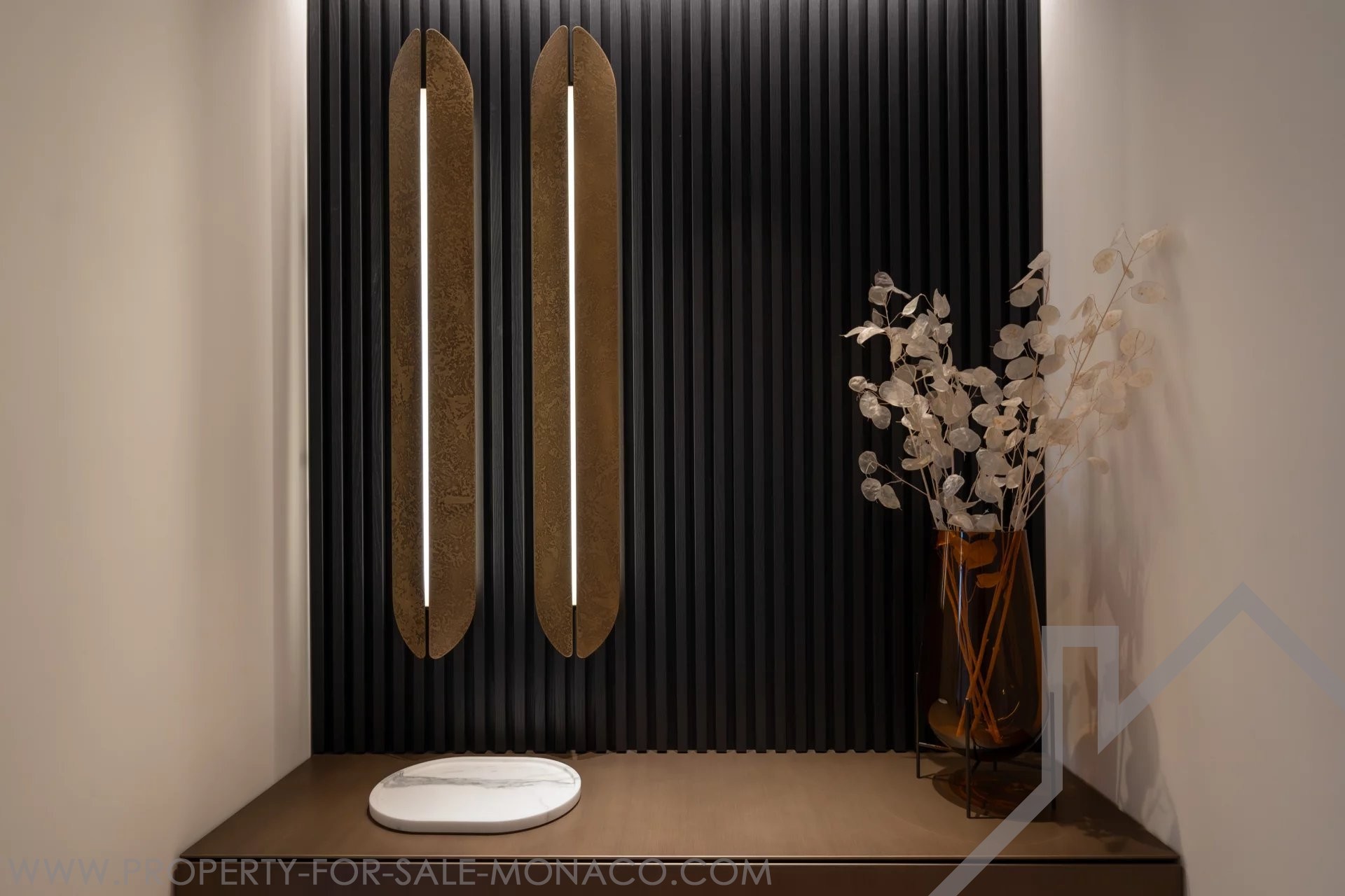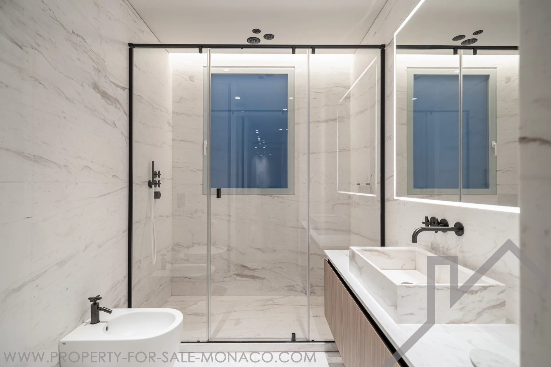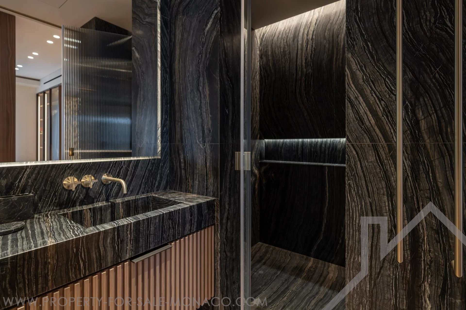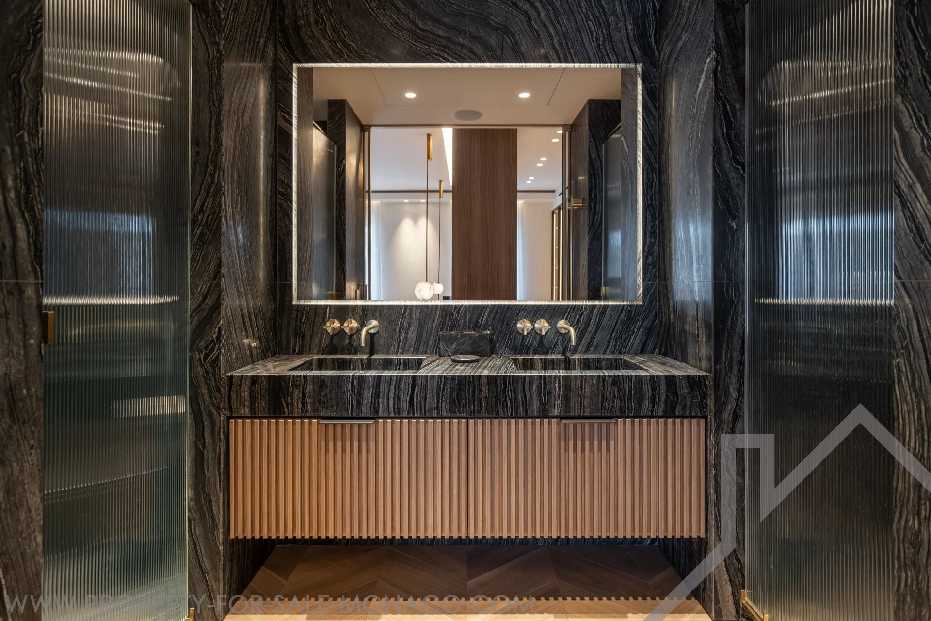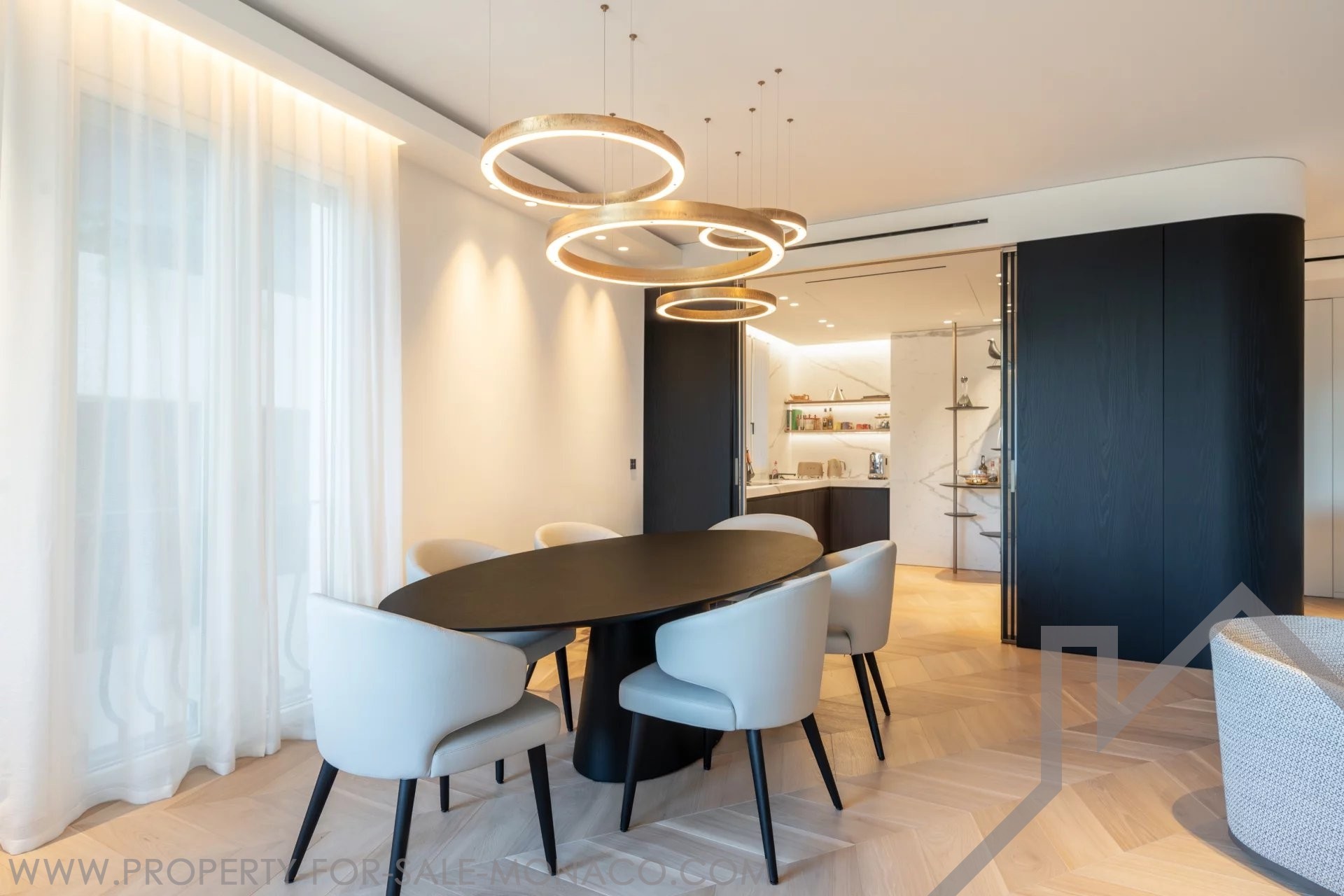 È composto da un ingresso, un luminoso soggiorno che si apre su un balcone con una piacevole vista sul Casinò e sui suoi giardini, una cucina semi-aperta e completamente attrezzata, una camera da letto principale con un ampio spogliatoio e un bagno con doccia completo, e due camere da letto, ognuna con il proprio spogliatoio e bagno con doccia.