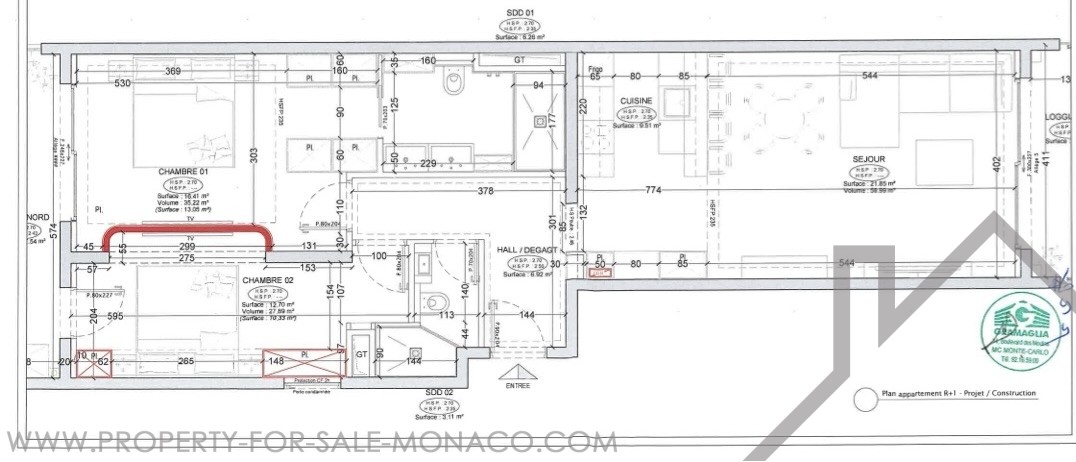 The spacious living room opens onto a landscaped terrace, offering uninterrupted views over Casino Square. The kitchen design and bespoke joinery integrate seamlessly throughout the apartment, creating a refined and cohesive living space. Kreon lighting enhances the atmosphere and highlights every detail.