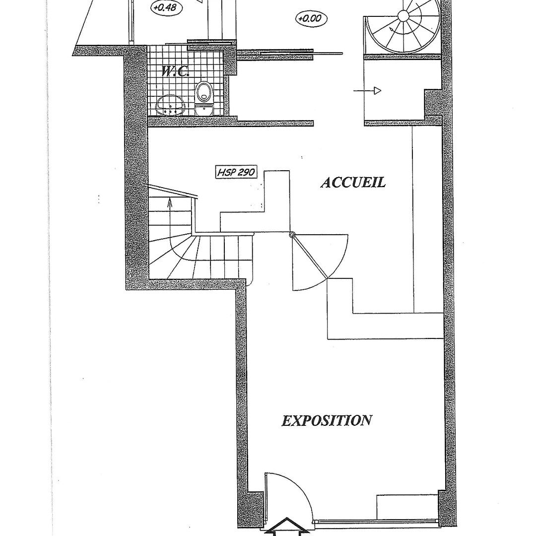 - Piano terra : Superficie di circa 50 m² che si affaccia sulla strada con un'ampia vetrata, che offre un'ottima visibilità.