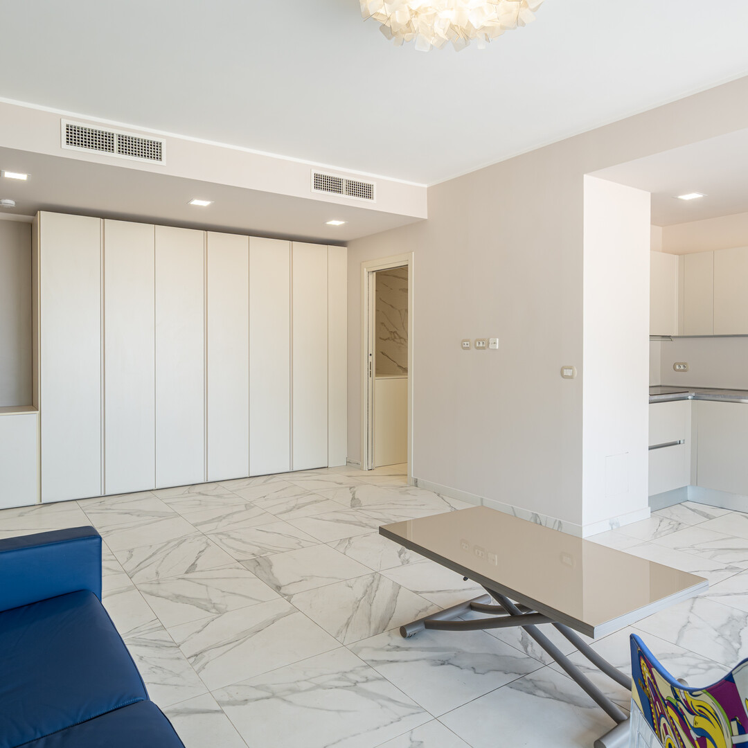 Al 27º piano, questo appartamento completamente ristrutturato regala una vista panoramica mozzafiato sul mare, sul porto e sul Rocher di Monaco, con un’esposizione a sud che garantisce una luminosità ottimale.