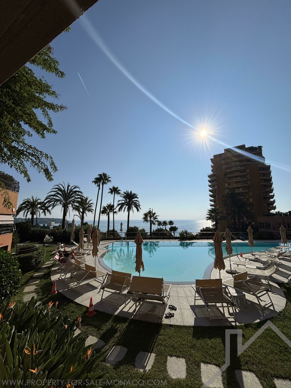 Spazioso monolocale con vista sul mare e sulla piscina in un condominio di lusso con portineria 24 ore su 24, caffetteria, palestra, parco, vicino al prestigioso Monte-Carlo Country Club. Enorme monolocale loft di 90 m2 con ingresso, sala principale, Cucina attrezzata separata, bagno con doccia, completamente rifatto, che gode di una vista molto bella sulla piscina, sul giardino e sul mare. Cantina n° 21 al 2° piano interrato. Possibilità di acquistare l'arredamento esistente dall'inquilino uscente . Parcheggio 2011 nel 2° seminterrato