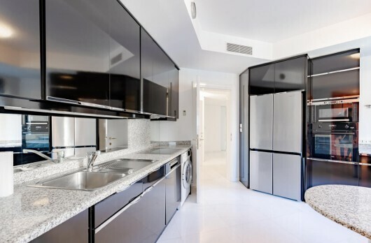 L'appartamento si apre su un ampio ingresso, che conduce ad un raffinato salone doppio inondato di luce, ampliato da un'ampia terrazza che offre una vista mozzafiato sul mare. La cucina indipendente e completamente attrezzata combina funzionalità e design contemporaneo.