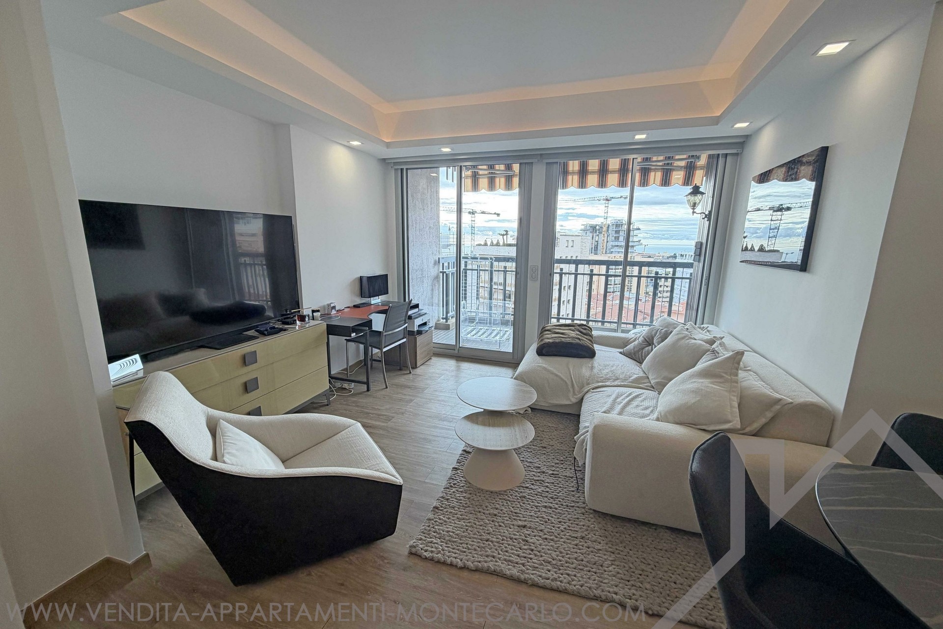 Con una superficie di 115m2 di cui 90m2 abitabili, questo bellissimo appartamento completamente ristrutturato e arredato offre una vista molto piacevole sul mare e sul Principato.