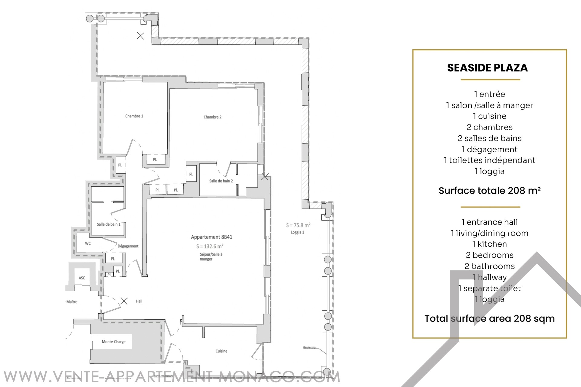 Superficie totale : 208.4 m²