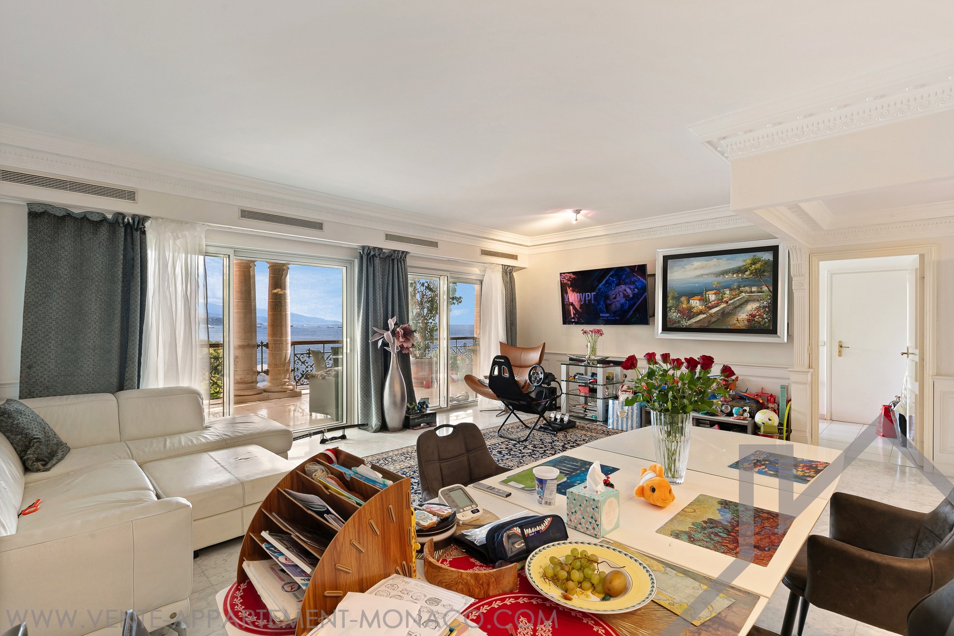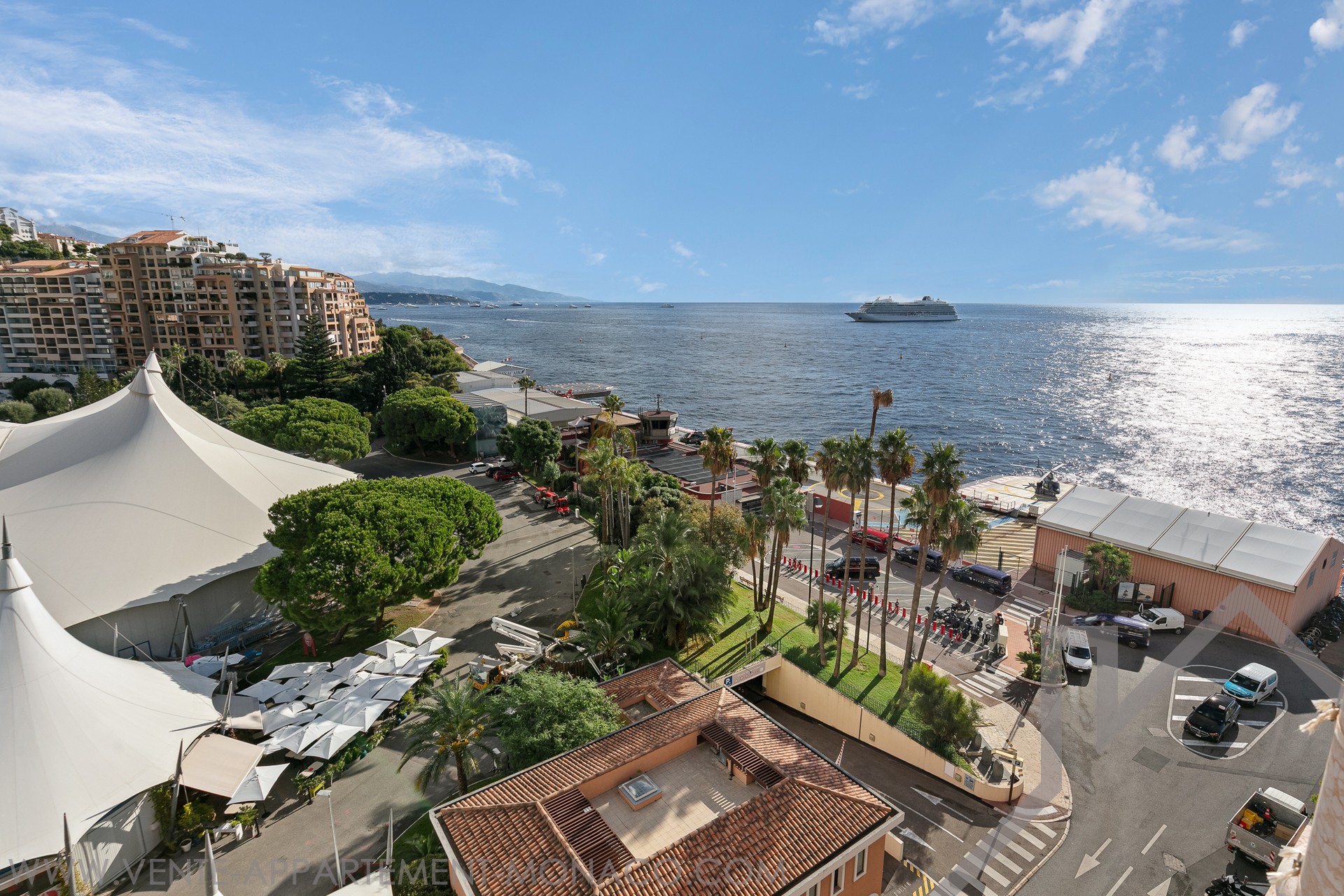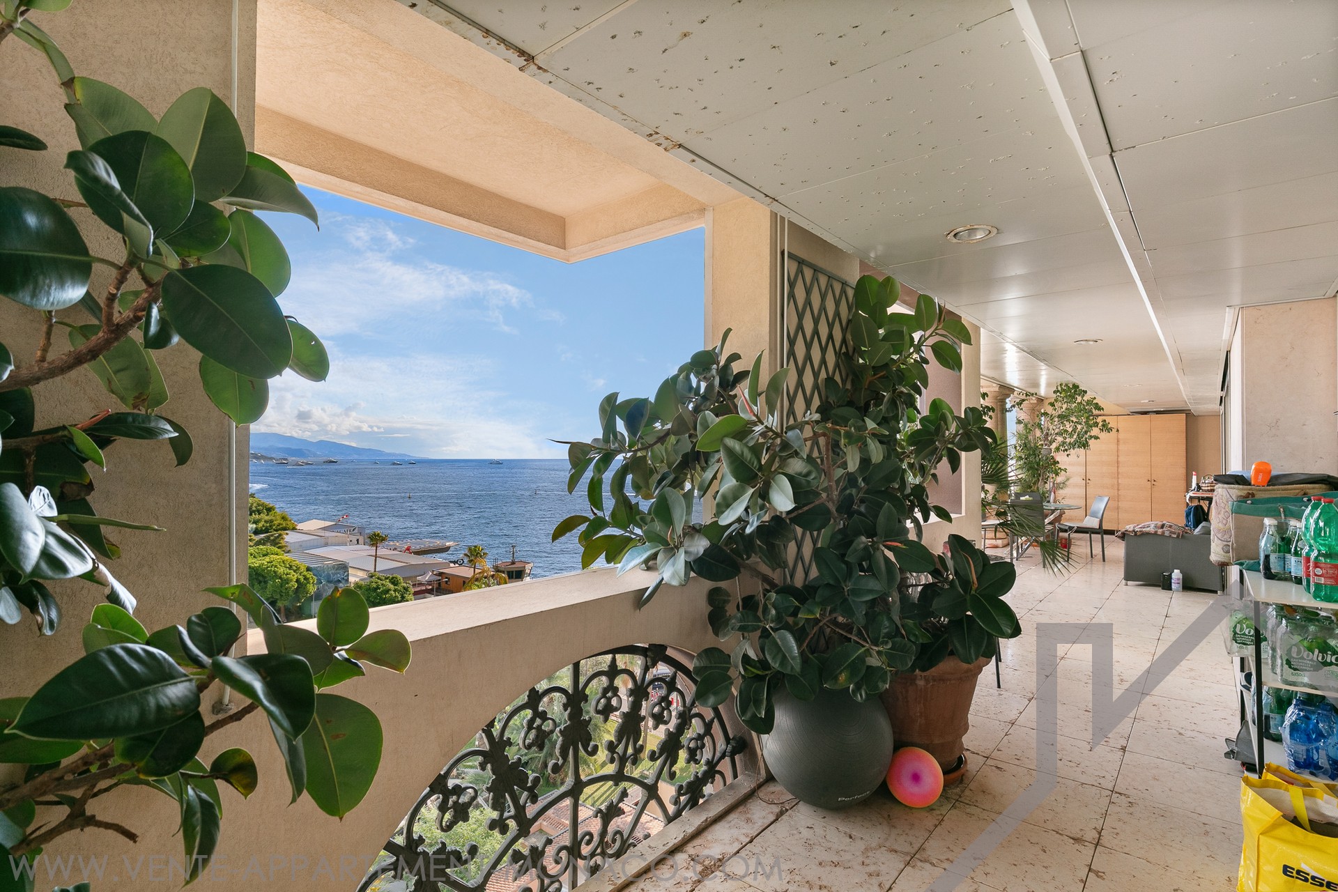 L'appartamento gode di una vista aperta sui giardini paesaggistici, sul Chapiteau de Fontvieille e panoramico sul Mar Mediterraneo, in un ambiente privilegiato.