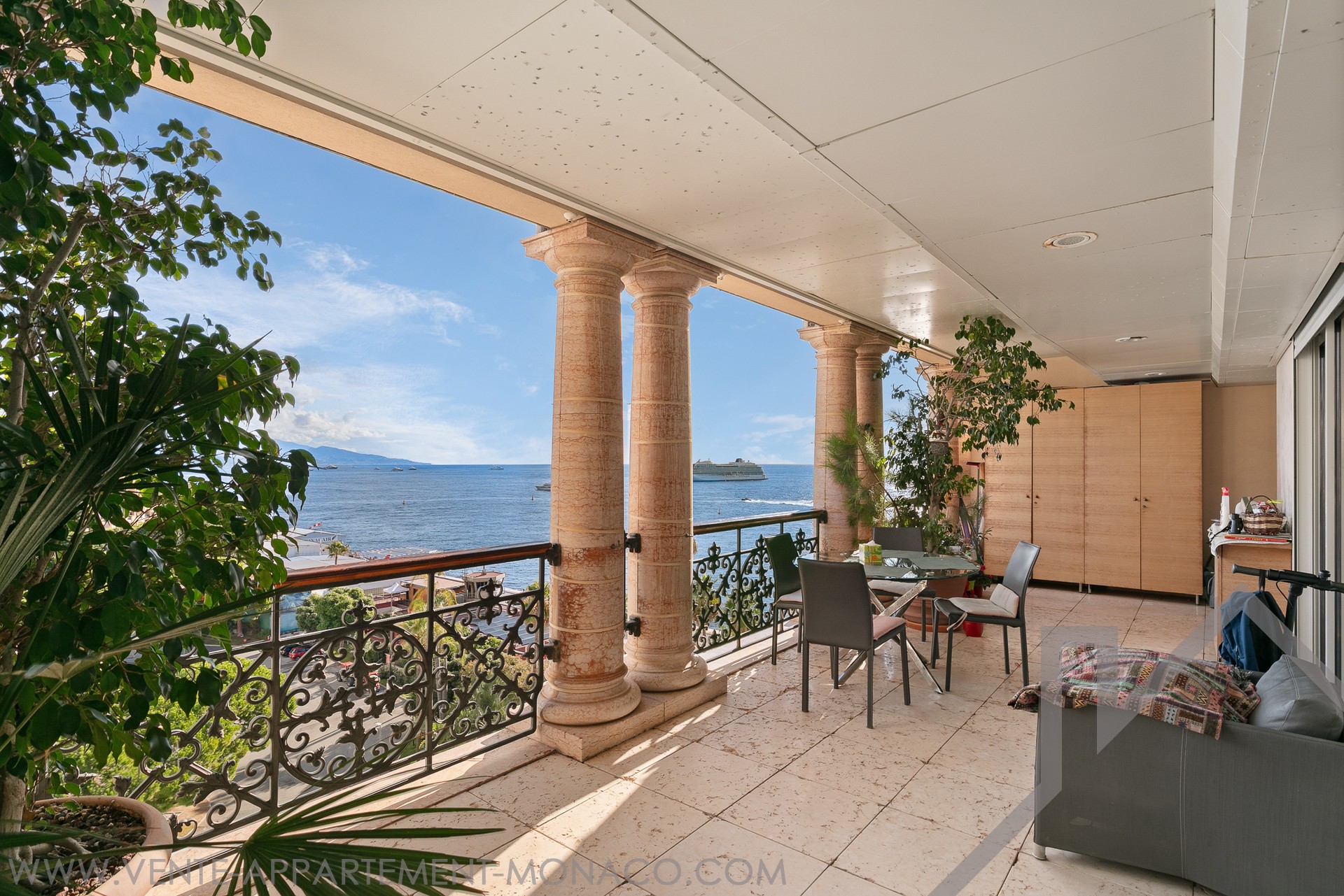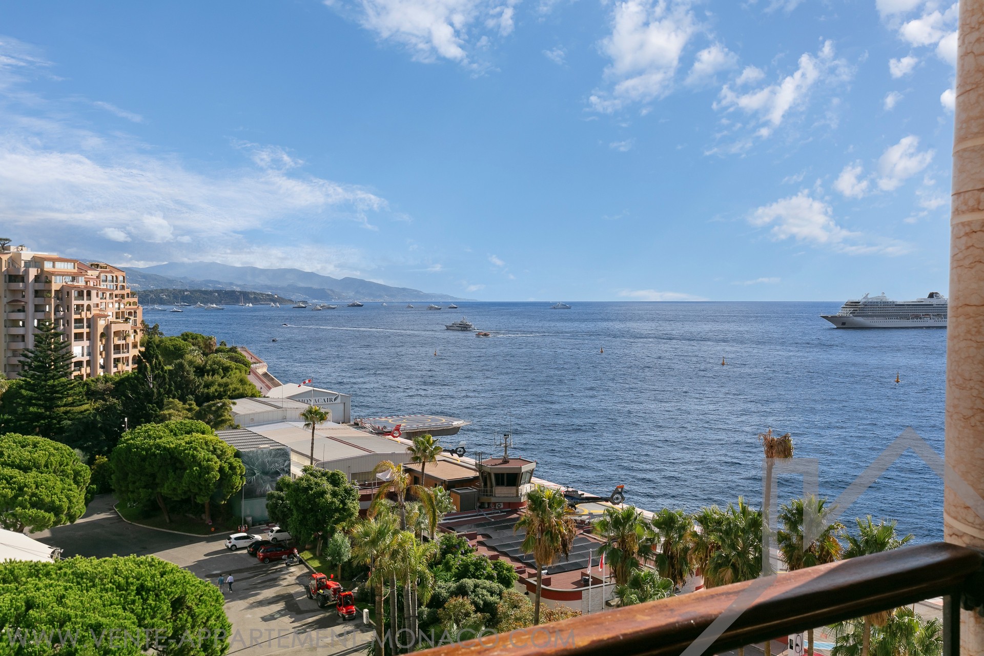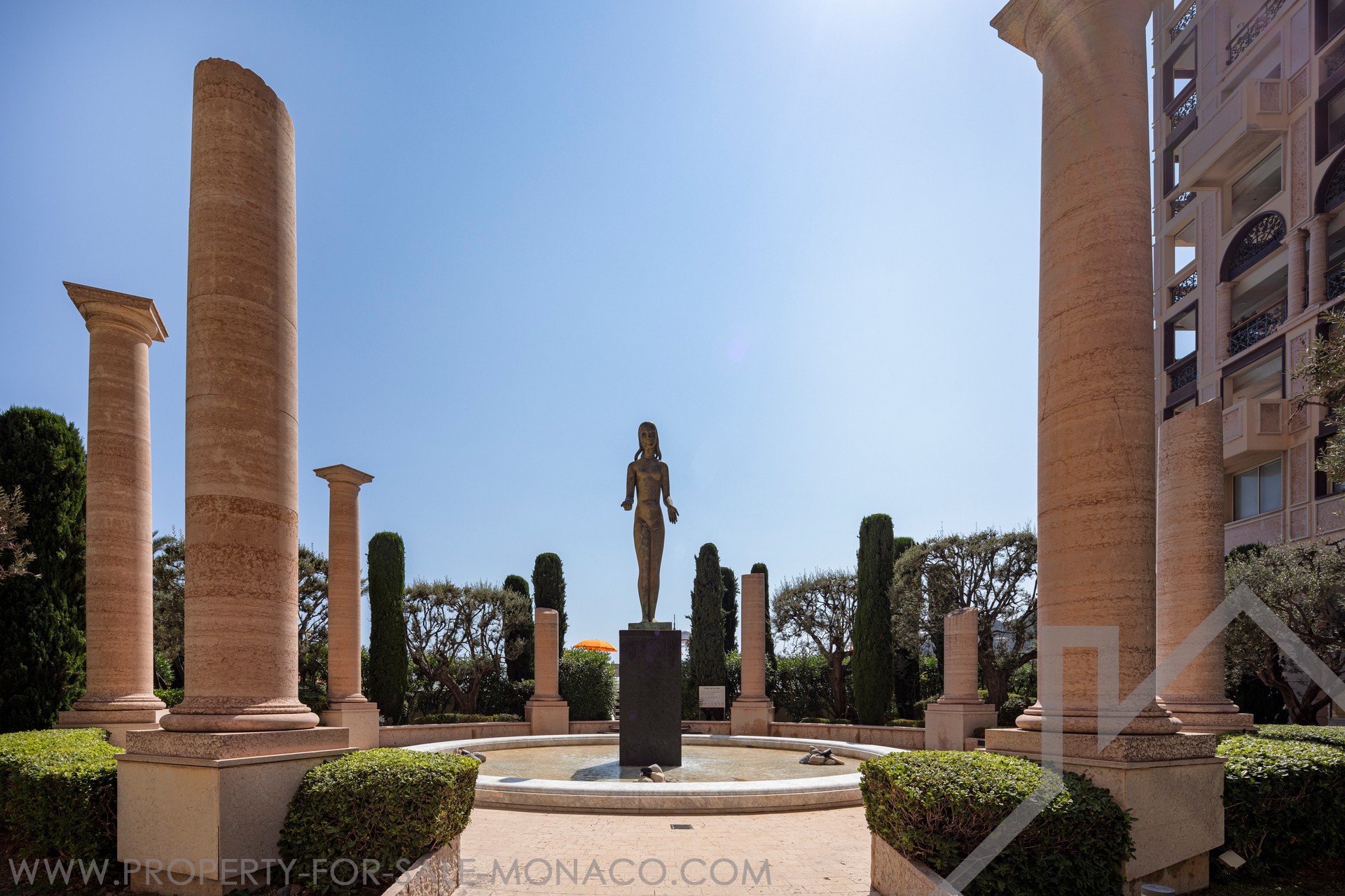 L'appartamento gode di una vista aperta sui giardini paesaggistici, sul Chapiteau de Fontvieille e panoramico sul Mar Mediterraneo, in un ambiente privilegiato.
