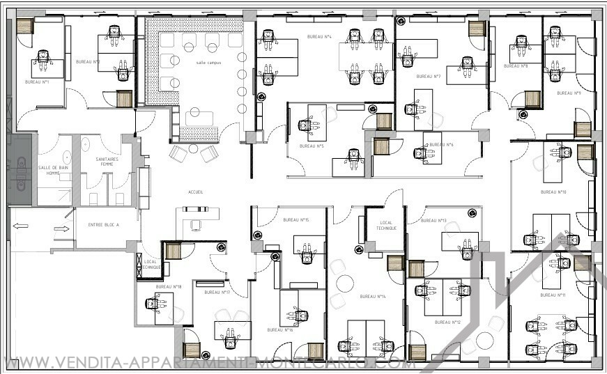 Situato nel cuore di Fontvieille, vicino a servizi, negozi e spiagge, magnifico ufficio composto da una bella reception, cucina-sala da tè, 18 spazi di lavoro divisi in vetro insonorizzato, 3 salle da bagno e un sala da doccia e servizi igienici, tutti arredati con materiali di alta qualità, Potenziale affitto annuale di € 520.000 tasse escluse, aria condizionata.