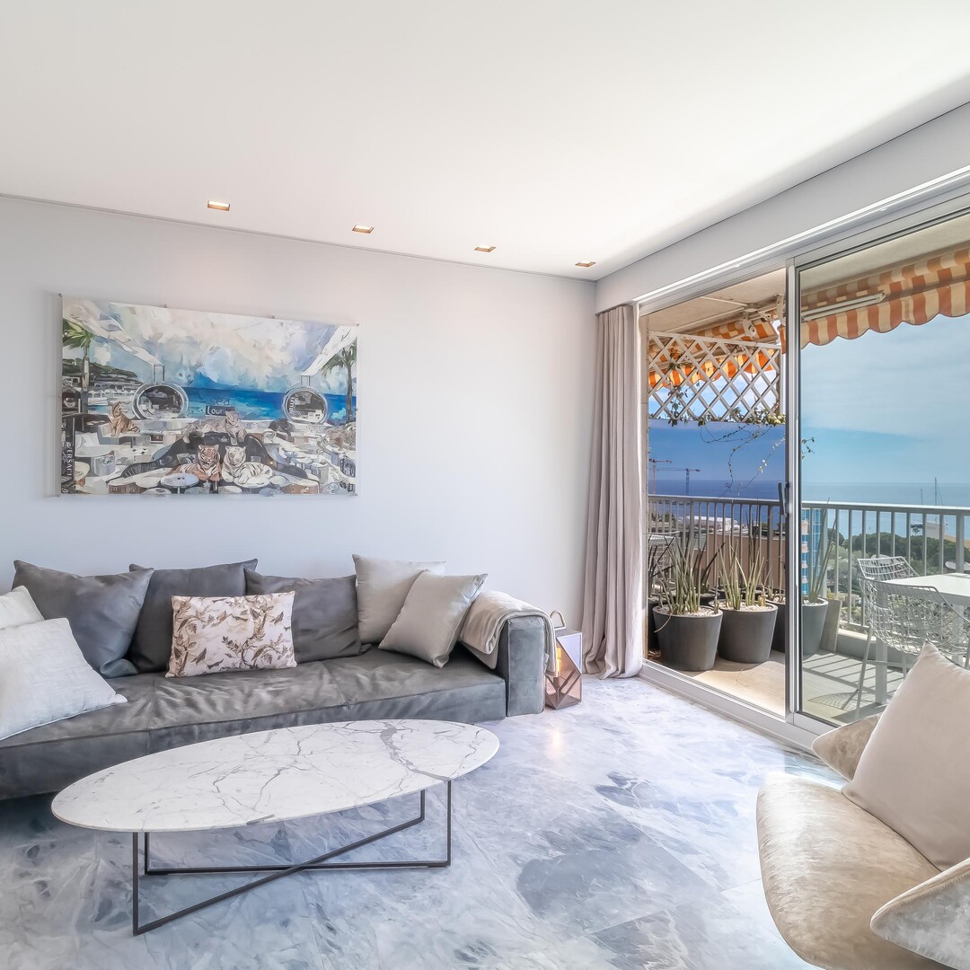 Nell'edificio Château d'Azur, appartamento completamente ristrutturato con materiali di qualità.