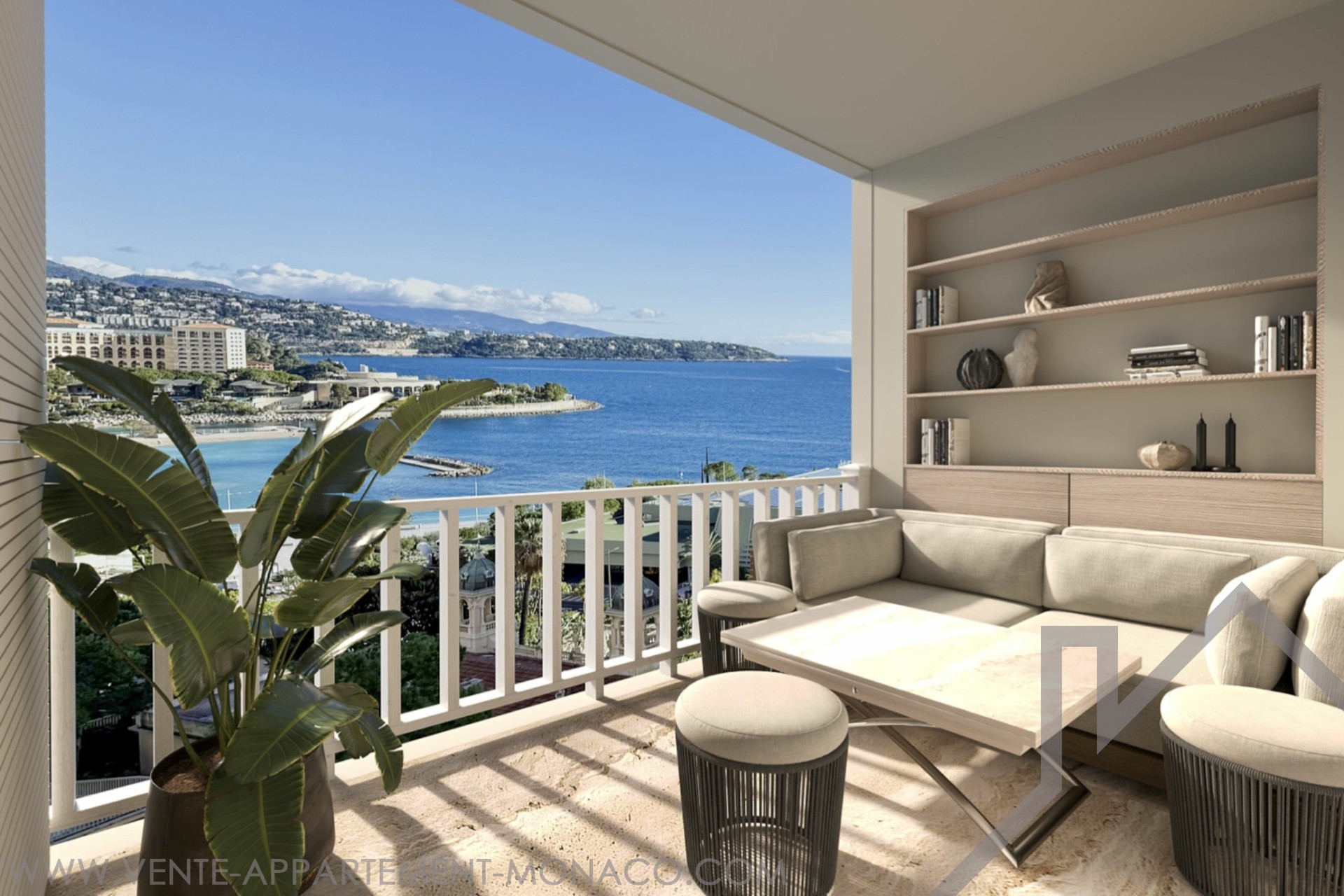 Splendido appartamento di 4 locali, completamente ristrutturato, situato in una via tranquilla di Avenue de Grande-Bretagne, nel cuore del rinomato quartiere del Carré d'Or a Monaco. Offre una vista magnifica sul mare.