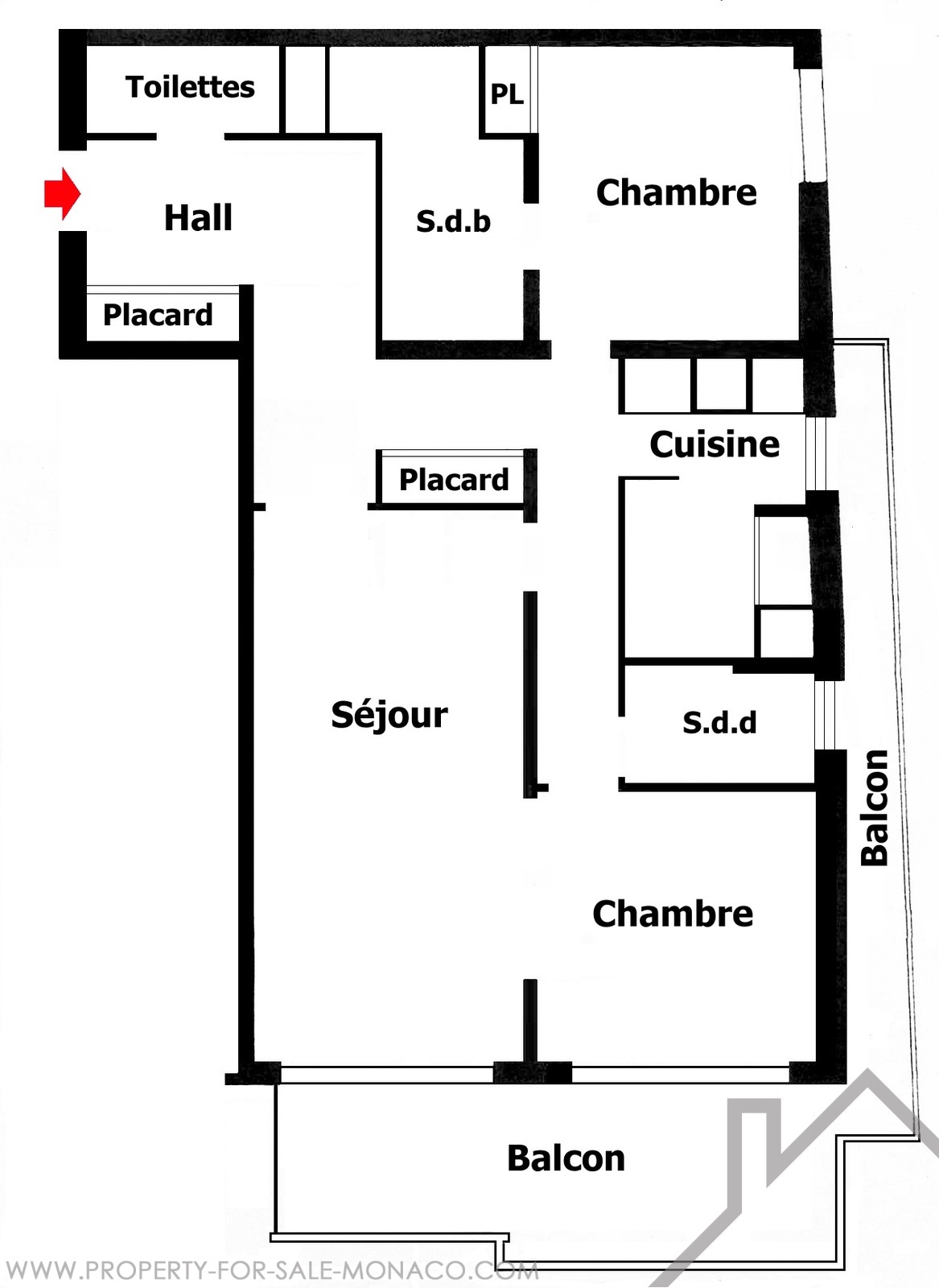 Configurazione attuale: la seconda camera da letto è stata riunita al soggiorno