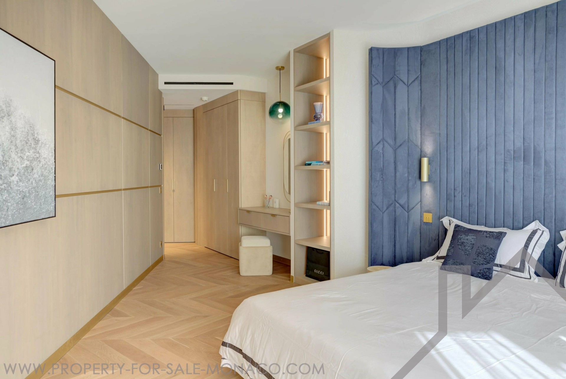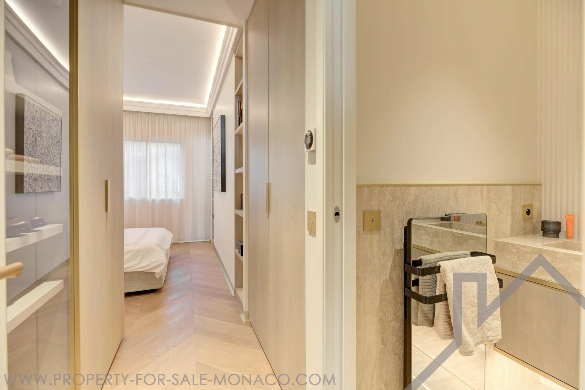 L'appartamento vanta anche una camera da letto principale con bagno privato e ampio spogliatoio, oltre a due ulteriori camere da letto, ciascuna con il proprio bagno e spogliatoio.