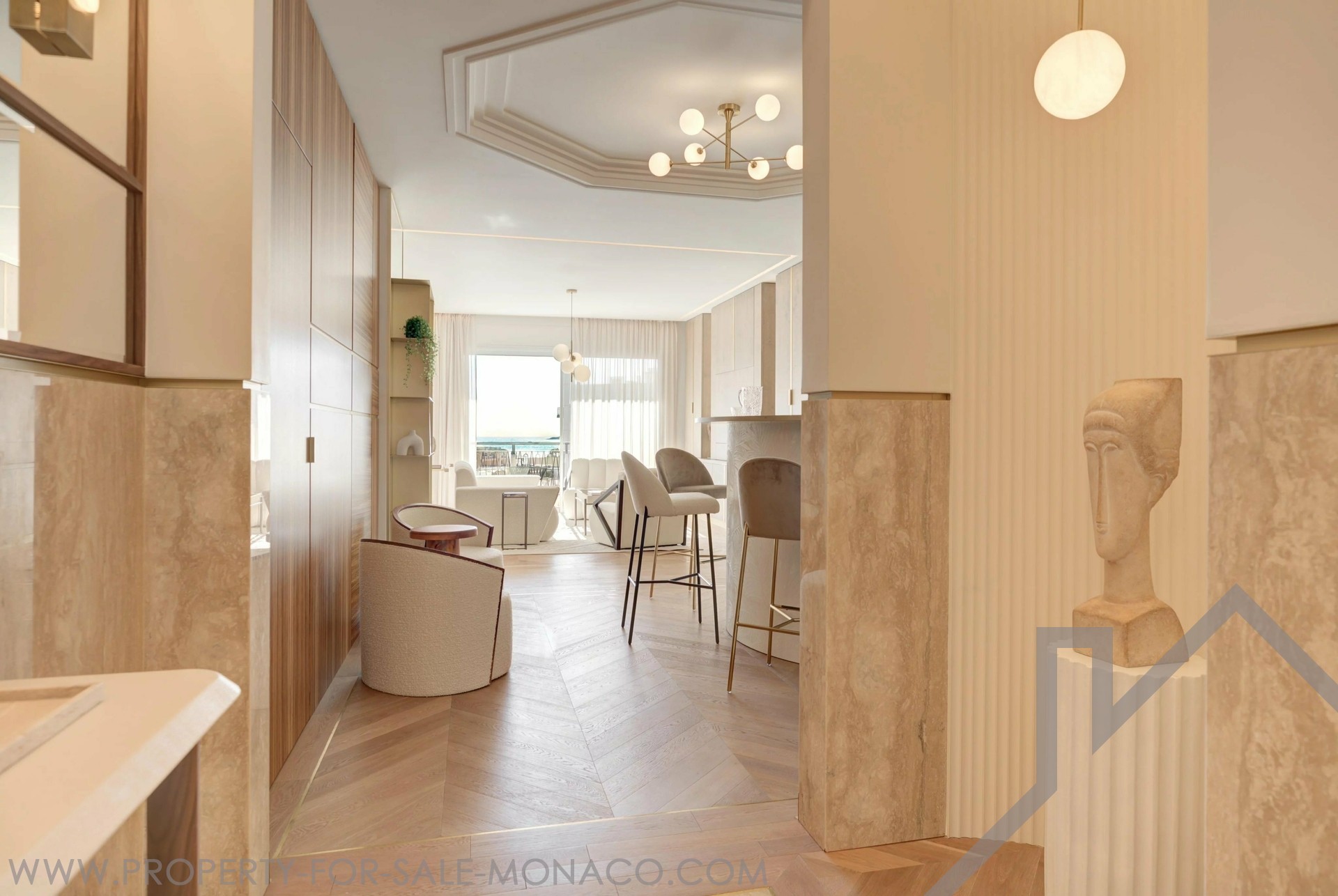 L'immobile si trova nel cuore di Monaco, in una residenza ricercata con portineria 24 ore su 24 e 7 giorni su 7, a breve distanza dalle spiagge e dai negozi del Larvotto.