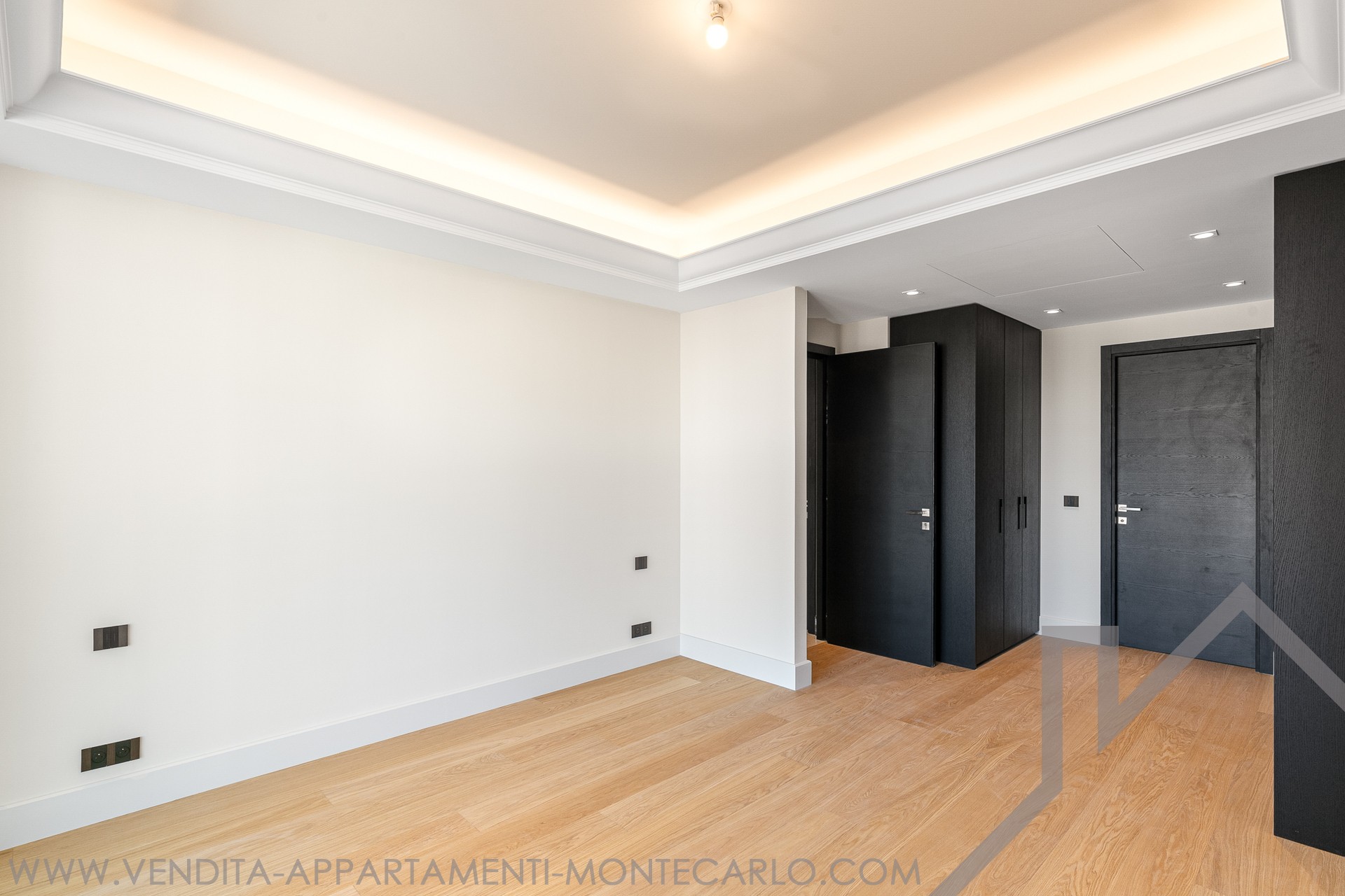 Finiture e dotazioni di alta gamma, rivestimenti in marmo (due finiture), parquet in legno pregiato nella camera da letto principale, cornici retroilluminate, stucchi murali, modanature decorative, testiera del letto modanata, mobili e infissi su misura.