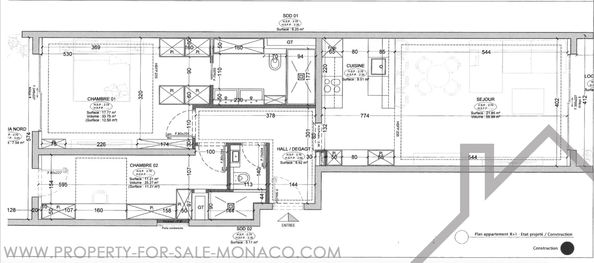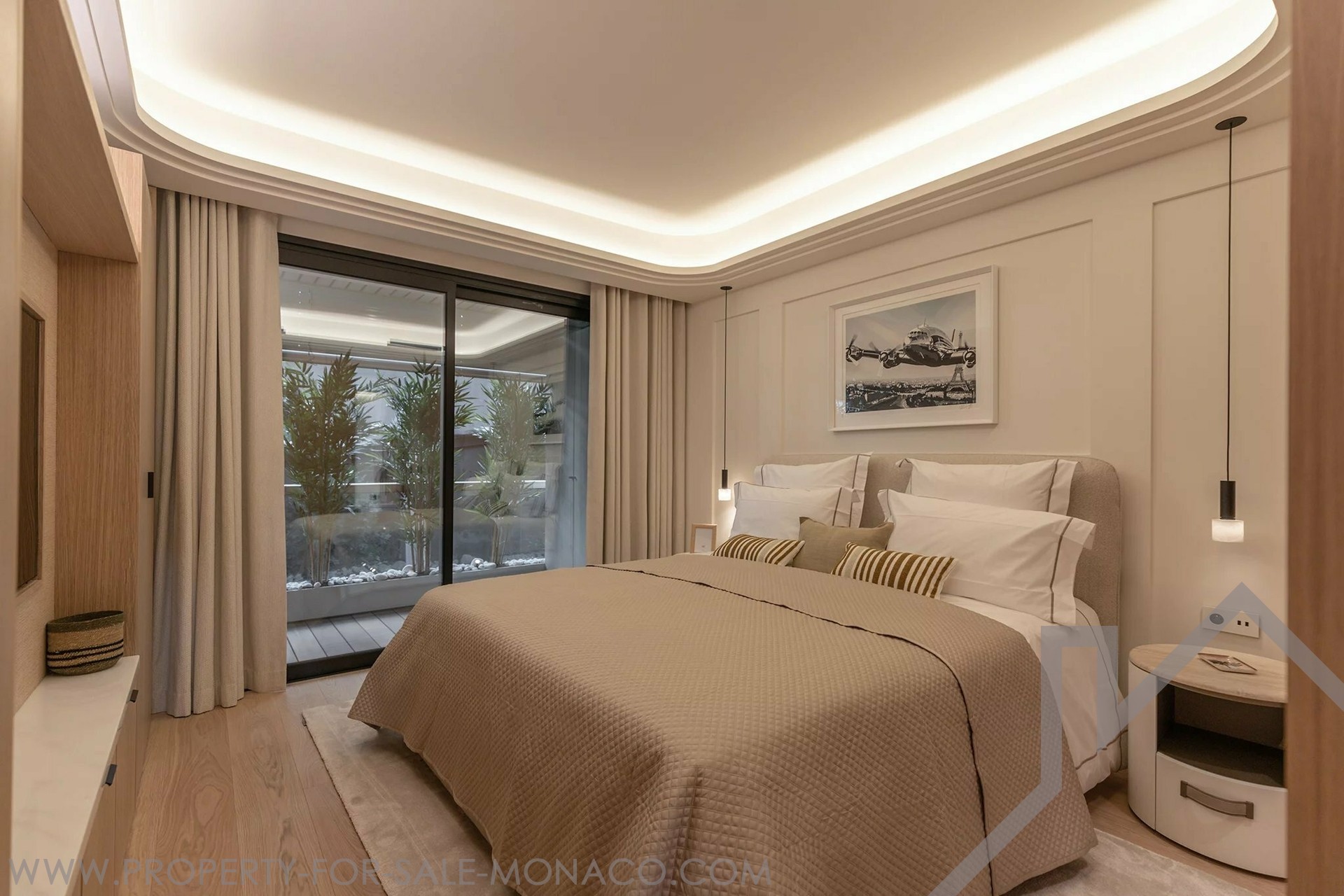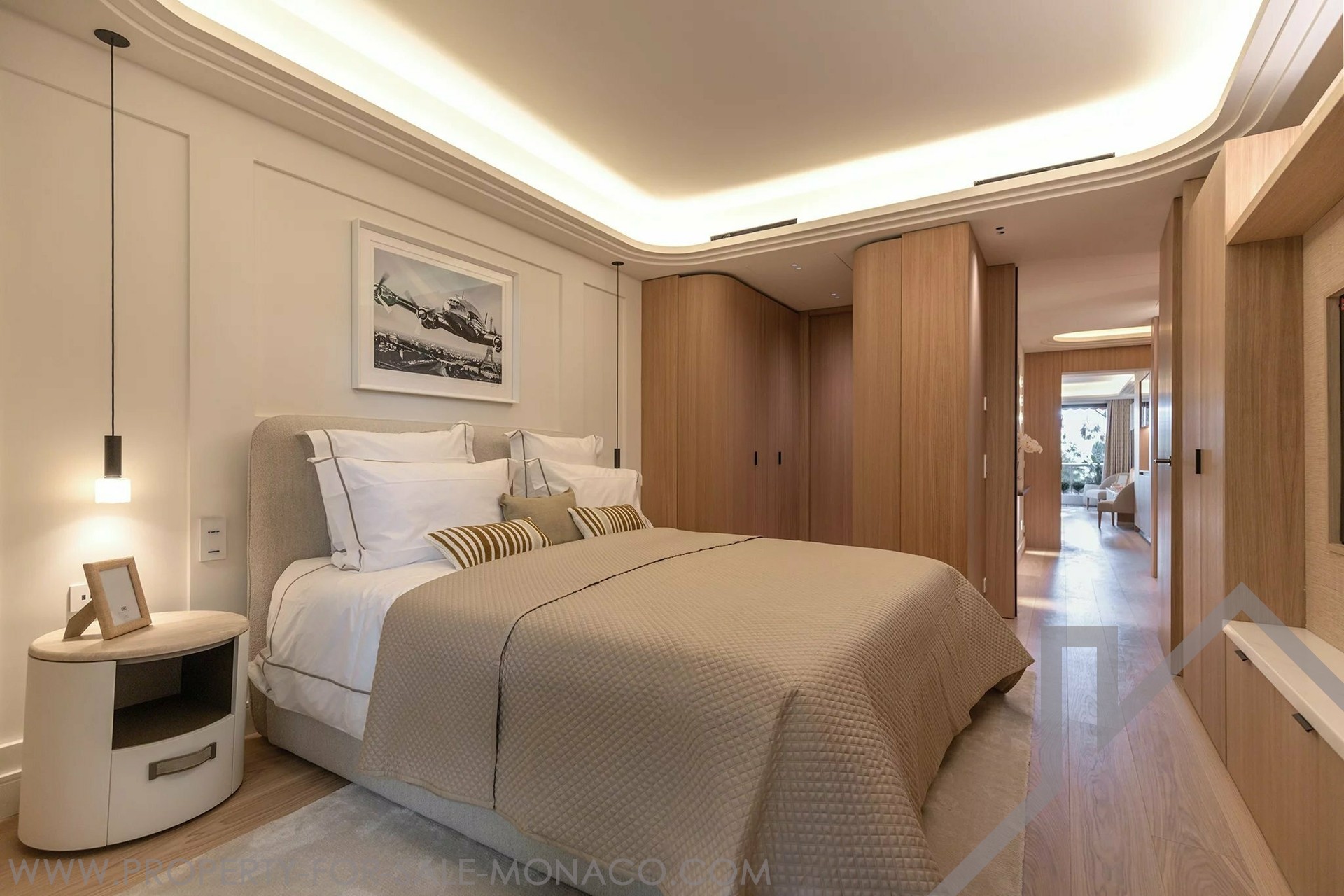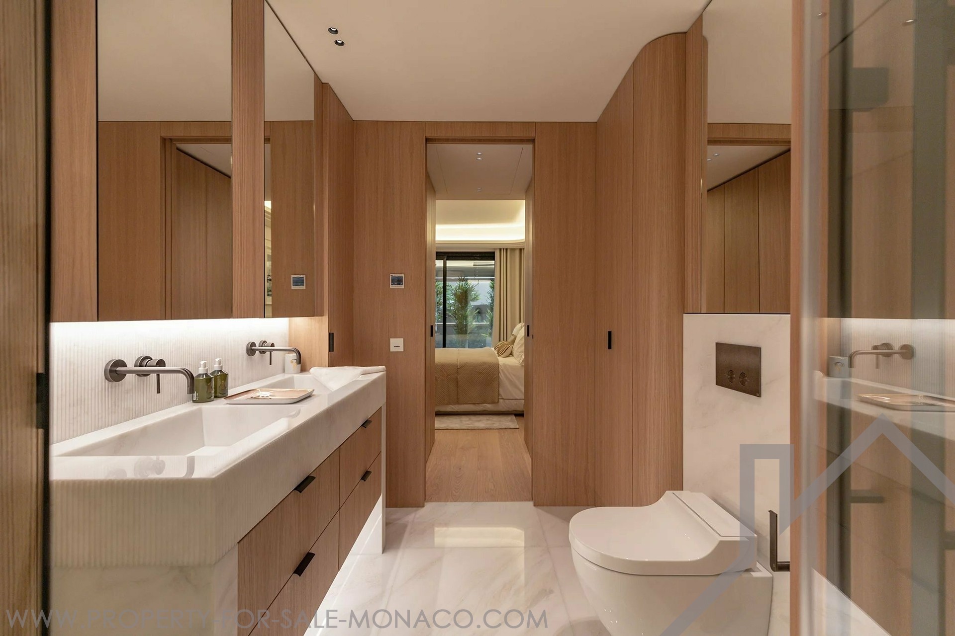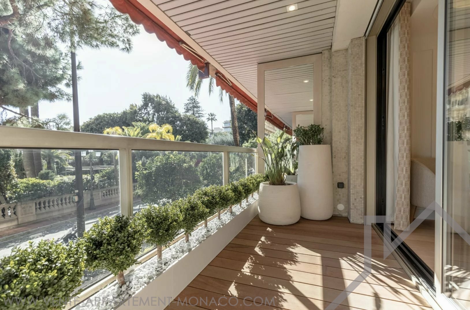 Davanti, il soggiorno e la cucina si aprono su una profonda terrazza con vista sul Casino de Monaco. Le due camere da letto si aprono su una seconda terrazza arredata.