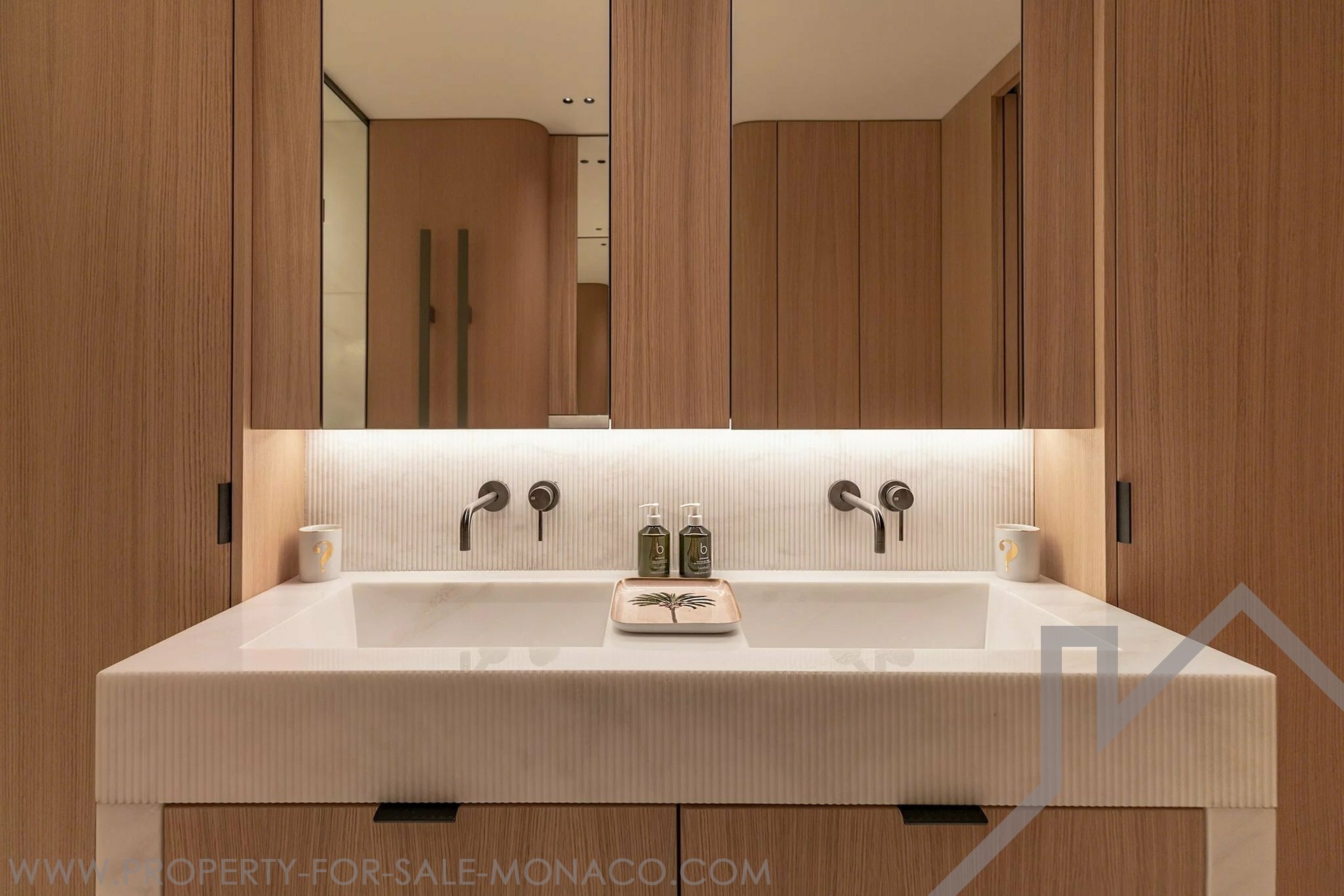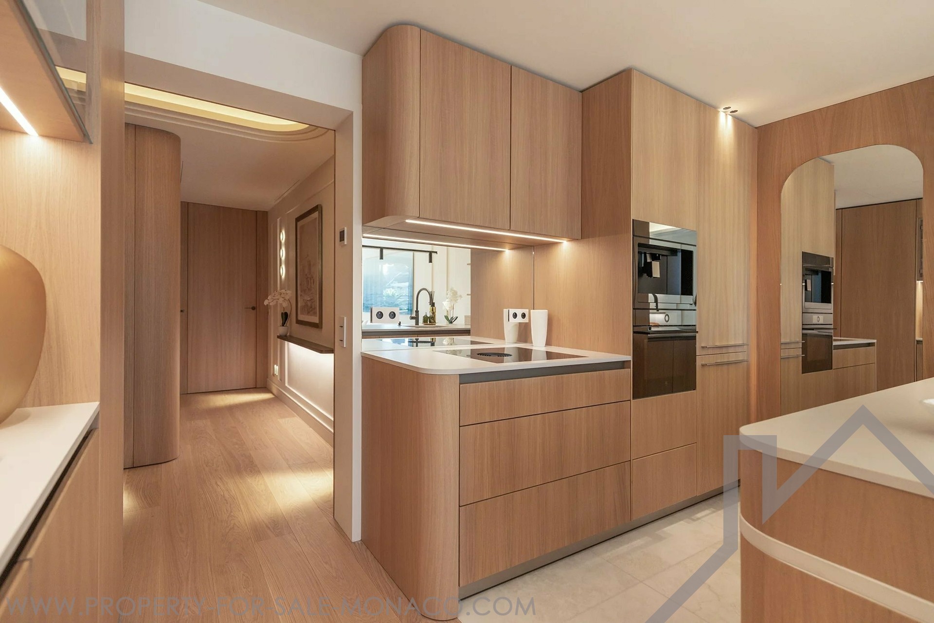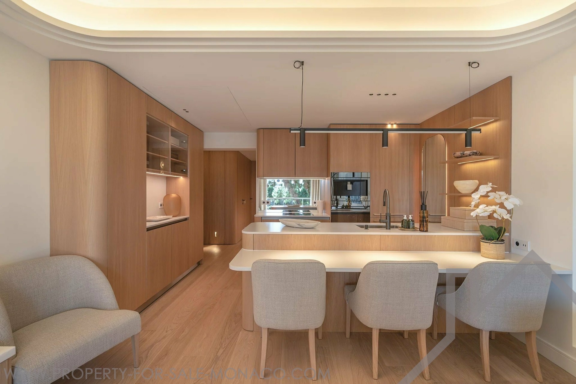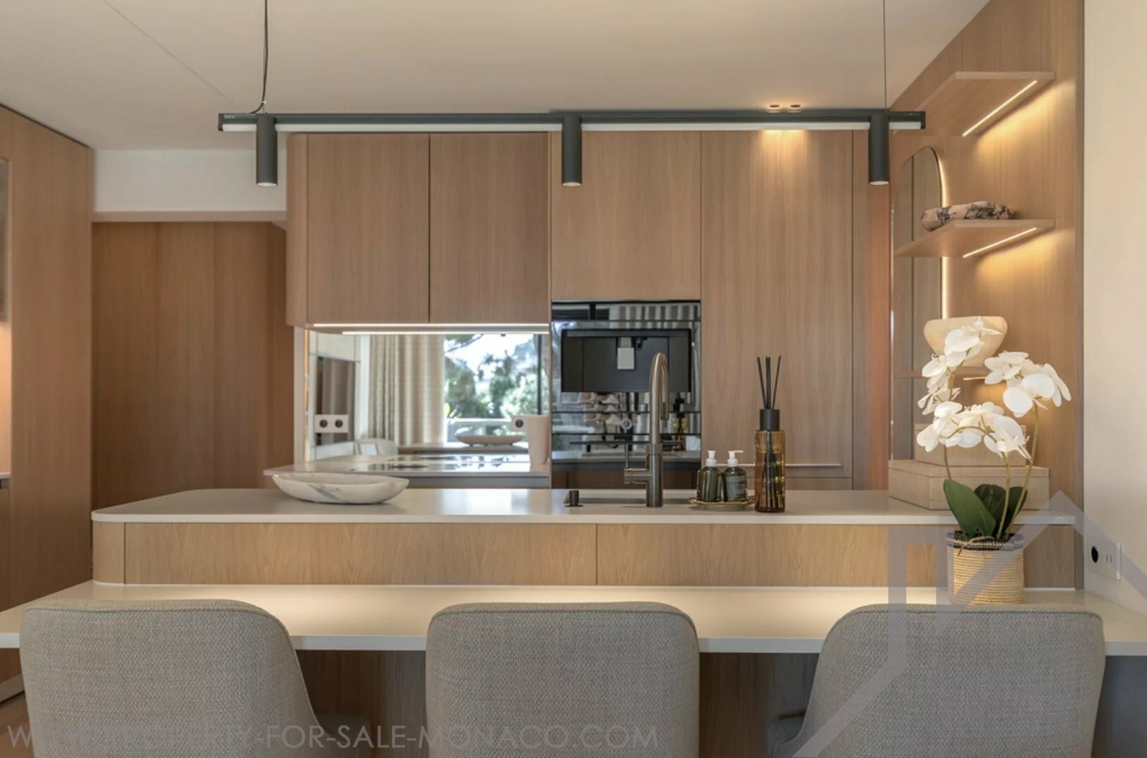 Entrando, scoprirai un elegante atrio d'ingresso che si apre su un lussuoso soggiorno, con una cucina open space Bulthaup. Il soggiorno si apre su una terrazza paesaggistica con vista sulla Place du Casino. Gli arredi raffinati sono arricchiti da splendidi lavori in legno su misura.