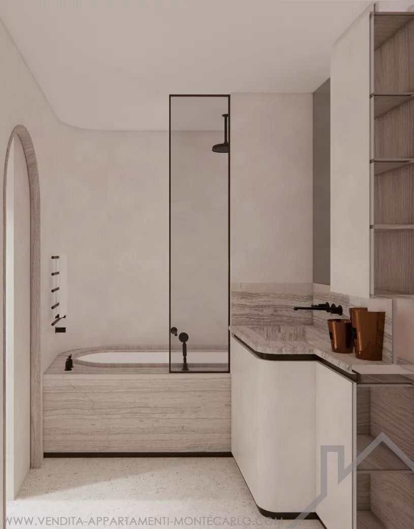 Le finiture di questa proprietà sono di rara eccellenza, ancora con vista sul Principato.