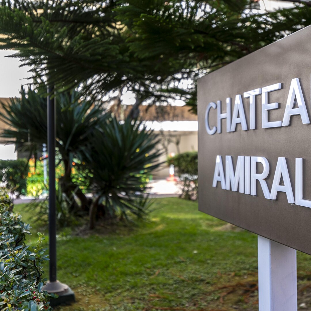 Il condominio Château Amiral, con servizio di portineria, dispone di due ingressi: uno verso la spiaggia di Larvotto e l'altro verso il Boulevard d'Italia, a 5 minuti dal Casinò e vicino ai migliori ristoranti e servizi.