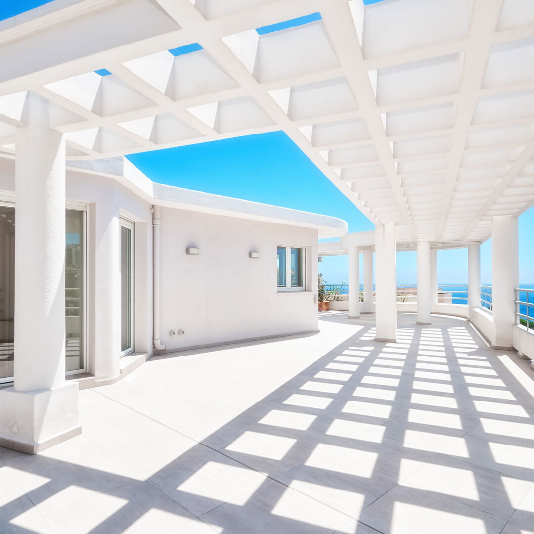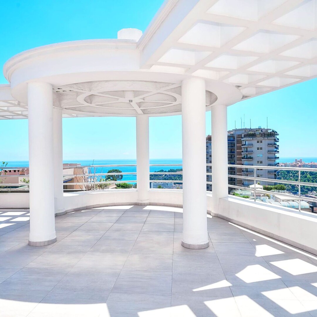 ESCLUSIVAAmpio attico/duplex con vista panoramica sul mare e un'ampia terrazza circolare sul tetto: Primo livello: ingresso, bagno di cortesia, doppio soggiorno/pranzo, cucina attrezzata, 2 camere con bagno privato, 1 camera di servizio con bagno, numerosi armadi a muro. 2 terrazze. Livello superiore: 1 ampia camera, 1 bagno con cabina armadio, uno studio. Box per 3 auto, 1 cantina.