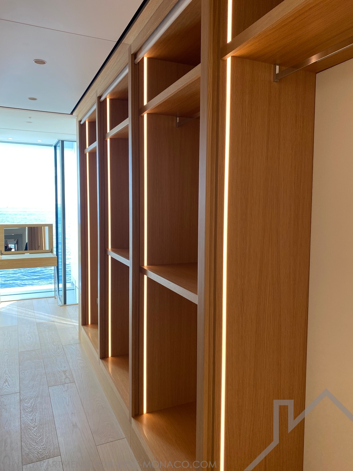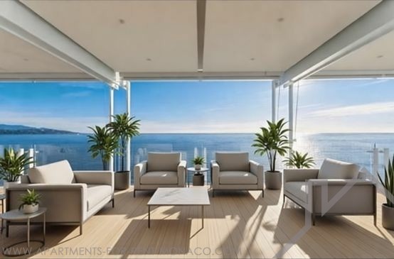 L'appartamento d'angolo traversante, bagnato di luce di fronte al mare, gode della miglior posizione, si apre su ampie terrazze offrendo una vista a 360°.