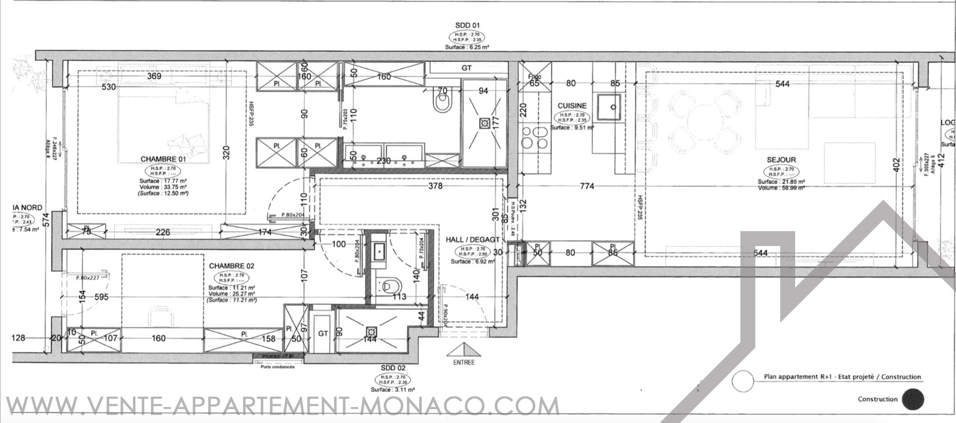Davanti, il soggiorno e la cucina si aprono su una profonda terrazza con vista sul Casino de Monaco. Le due camere da letto si aprono su una seconda terrazza arredata.