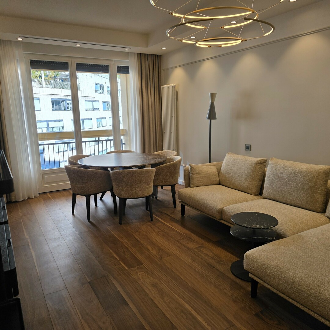 Questo superbo appartamento di 3 stanze è stato completamente ristrutturato con finiture di alto livello e arredato con mobili su misura, offrendo un ambiente abitativo raffinato e contemporaneo.