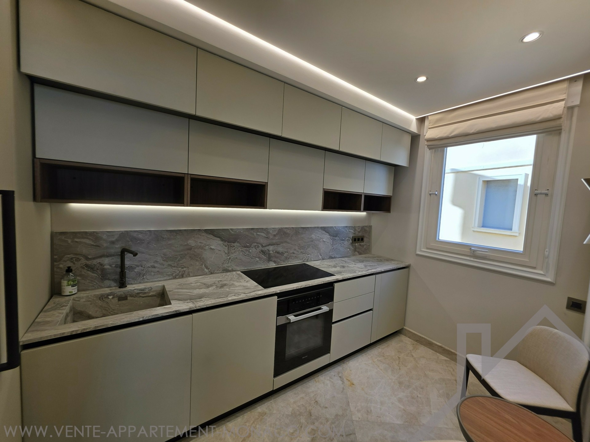 Questo superbo appartamento di 3 stanze è stato completamente ristrutturato con finiture di alto livello e arredato con mobili su misura, offrendo un ambiente abitativo raffinato e contemporaneo.