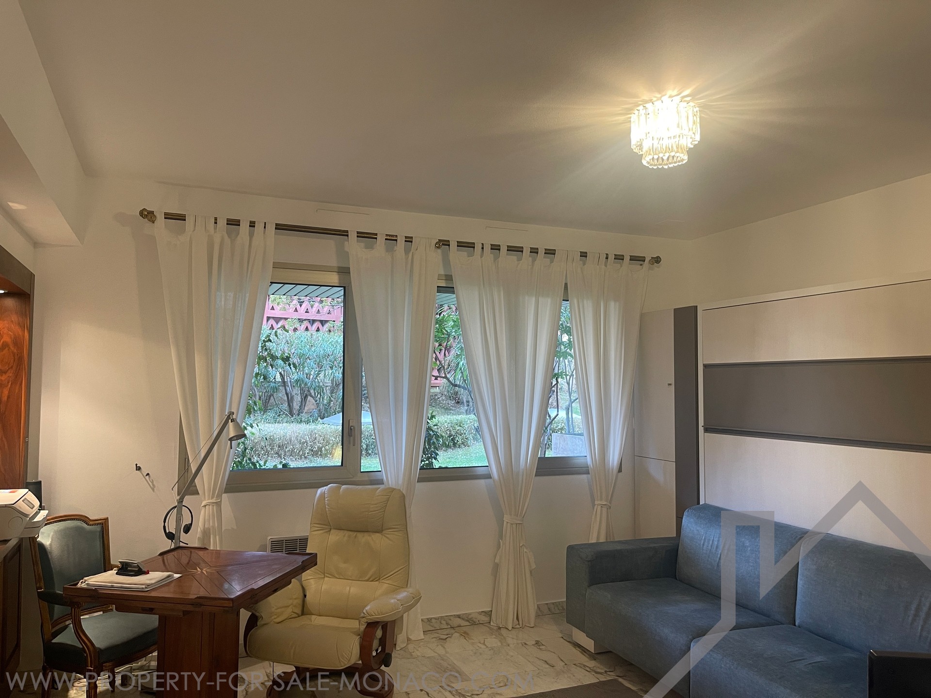 Situato al piano terra dell'edificio “Les Oliviers”, con portineria, nel quartiere del Jardin Exotique, monolocale composto da: