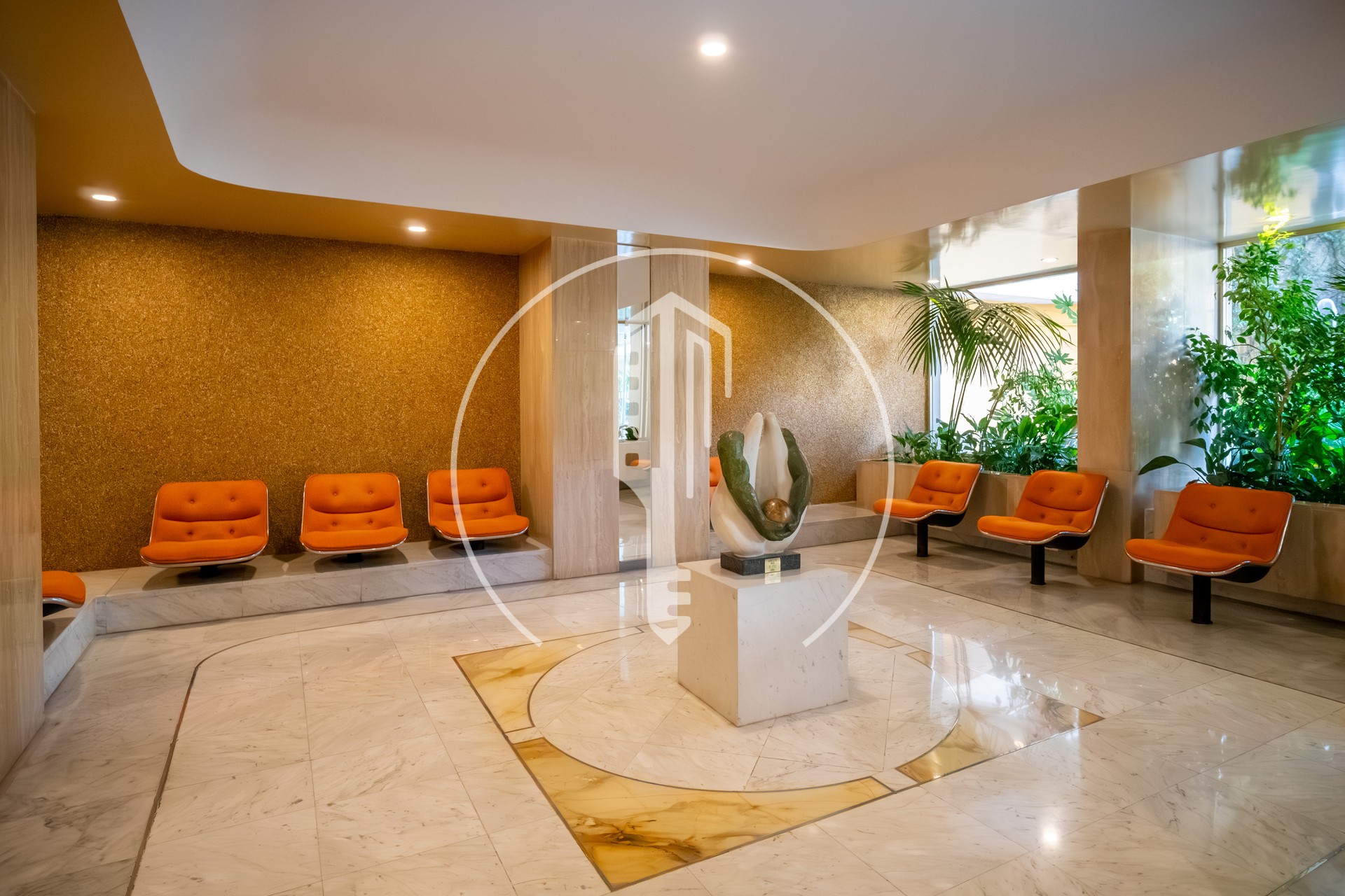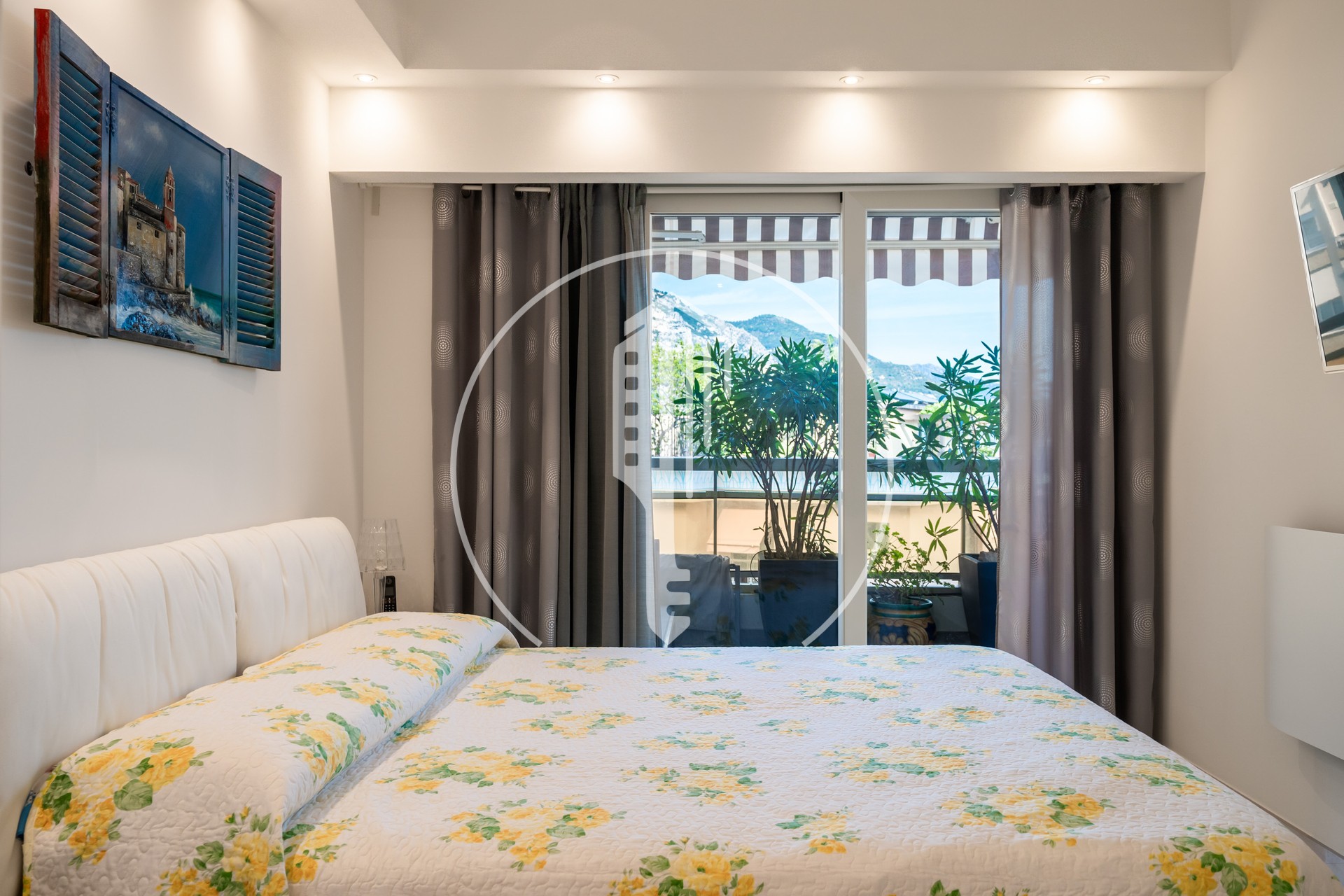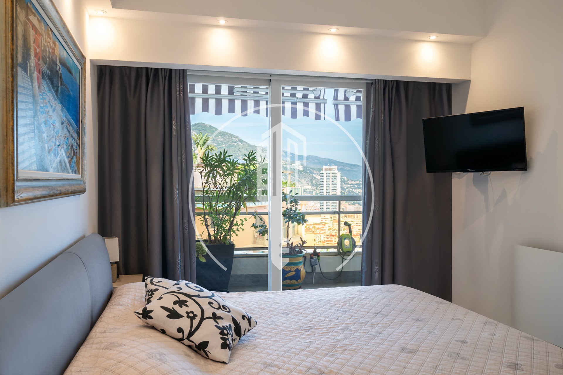 Con una superficie interna di 90,68 mq e una terrazza di 27,70 mq, situato a un piano alto, questo luminoso trilocale gode di una notevole vista panoramica sul mare e sul porto di Monaco.