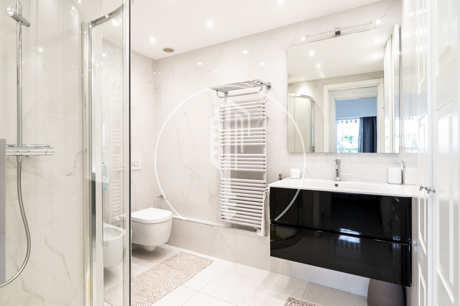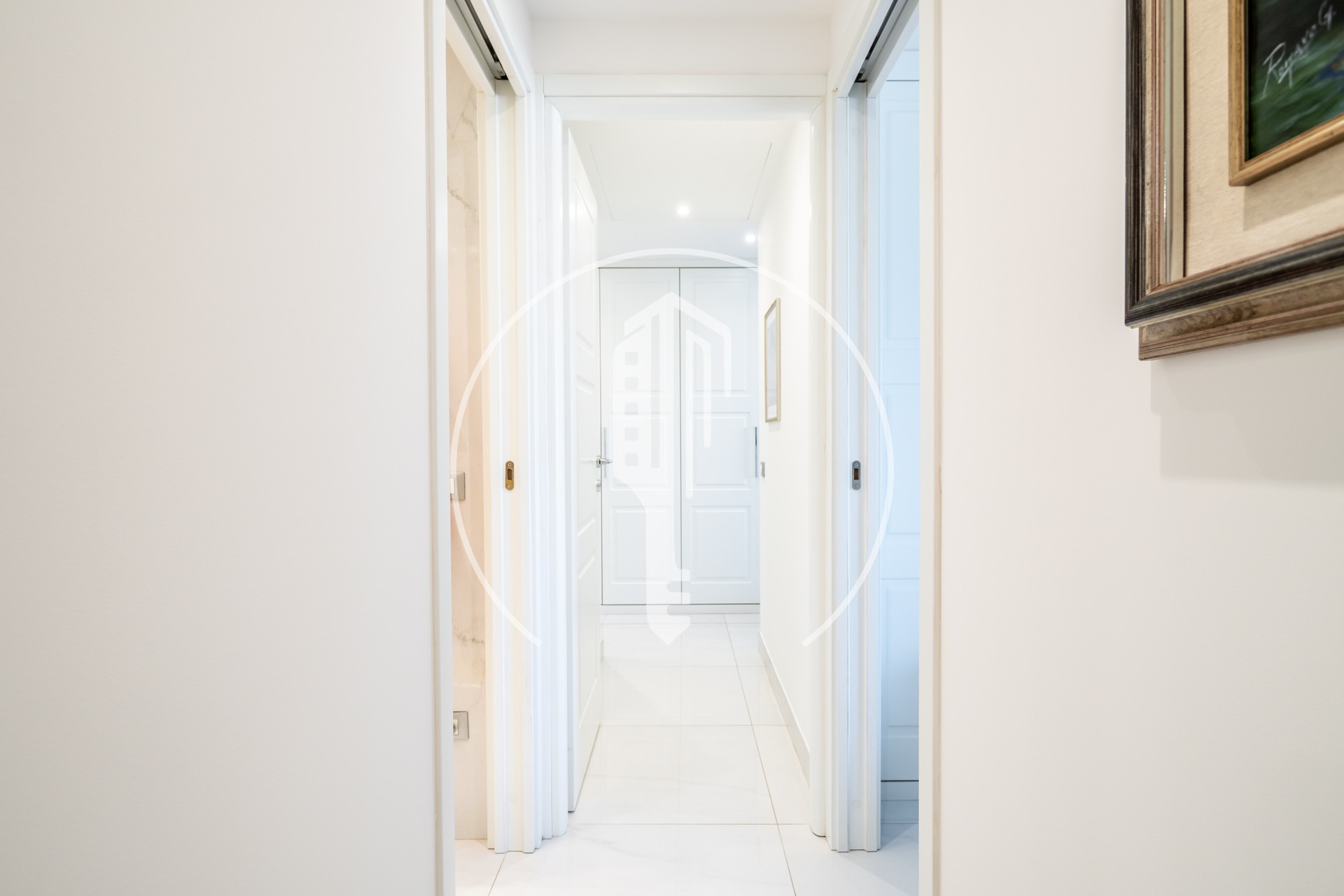 L’appartamento è composto da ingresso, ampio soggiorno con cucina americana completamente attrezzata, una camera padronale con cabina armadio e bagno en suite con WC, oltre a una seconda camera con cabina armadio e bagno con doccia separato e WC.