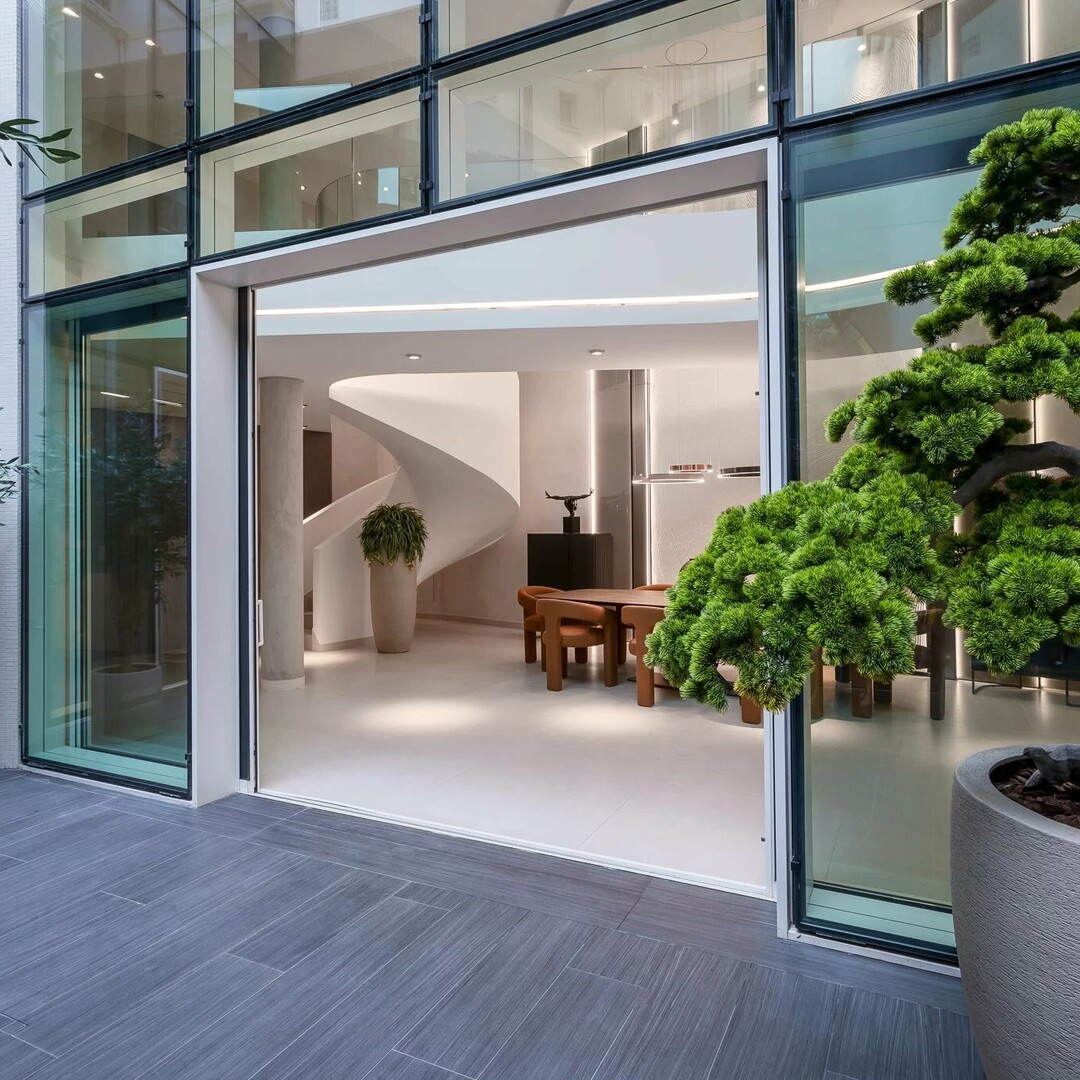 Infine, l'ultimo piano della villa è una vera e propria oasi di pace, rara nel Principato di Monaco, con la sua vegetazione lussureggiante, la piscina privata e la zona relax: un luogo ideale per intrattenere gli ospiti in un ambiente intimo e raffinato.