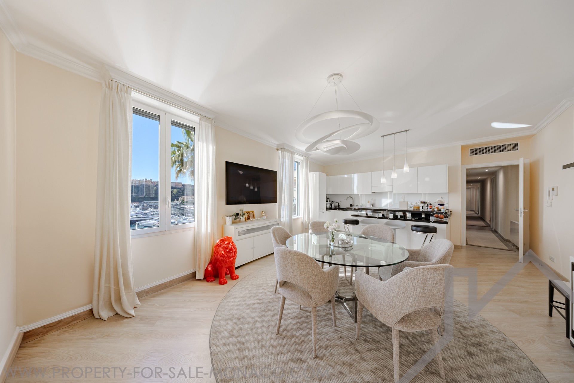 Nel cuore di Monte-Carlo, a due passi dal Carré d'Or, questo superbo appartamento di 6 stanze di 185 m² secondo la legge 887 offre una vista mozzafiato su Port Hercule.