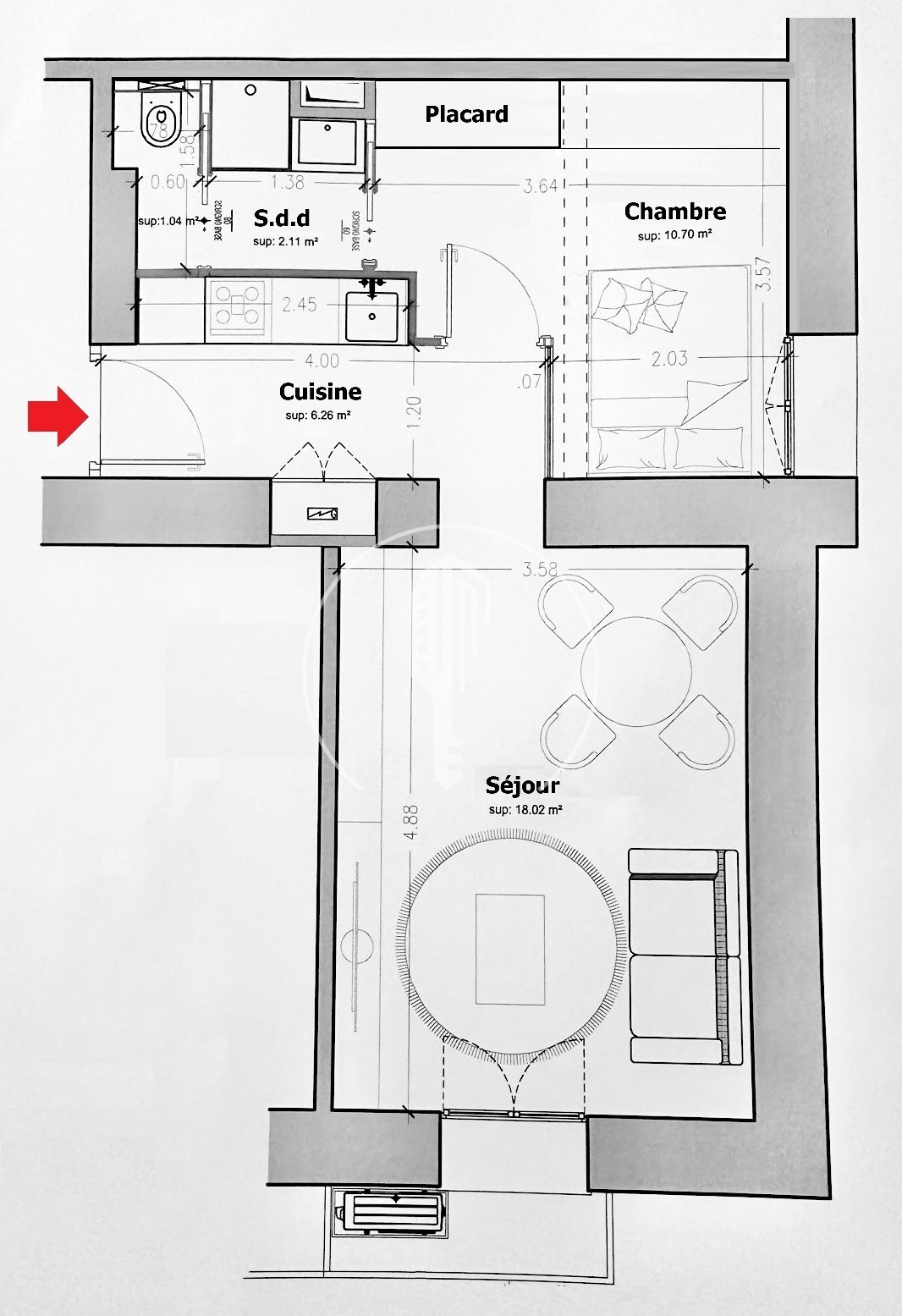 Superficie totale : 53 m²