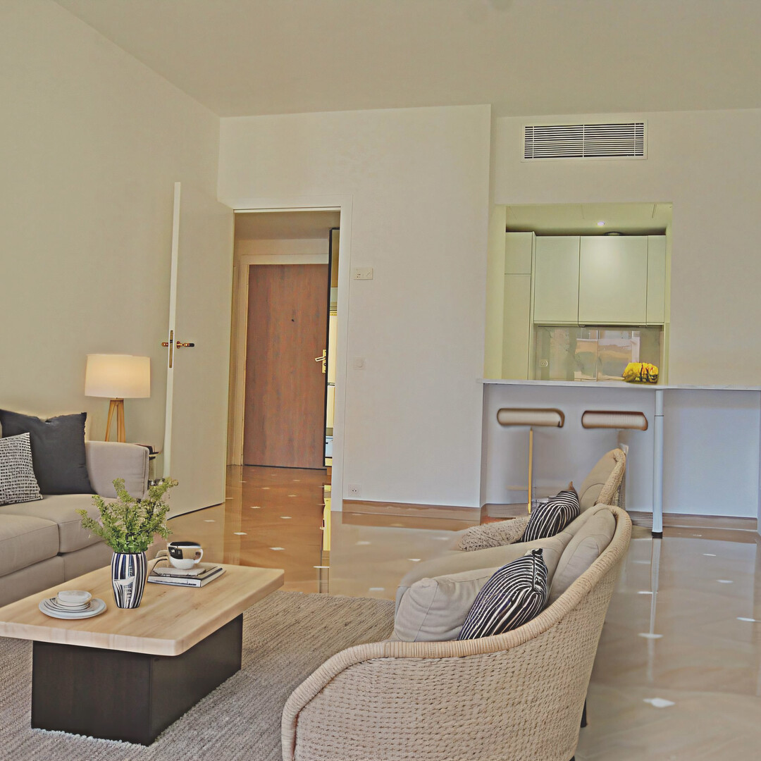 Situato nel bellissimo complesso residenziale Eden Star, sul porto di Fontvieille e vicino a tutti i servizi, questo bilocale offre una superficie di circa 76 m² e una loggia.