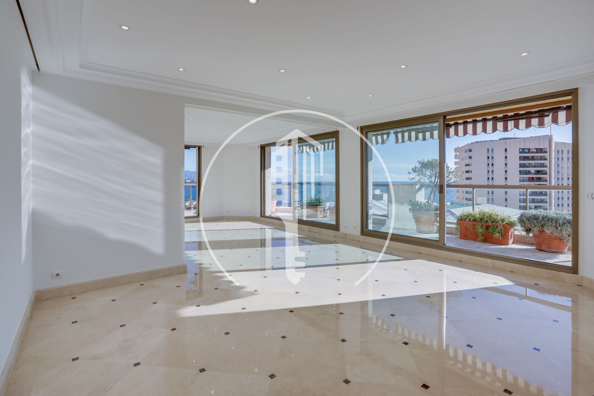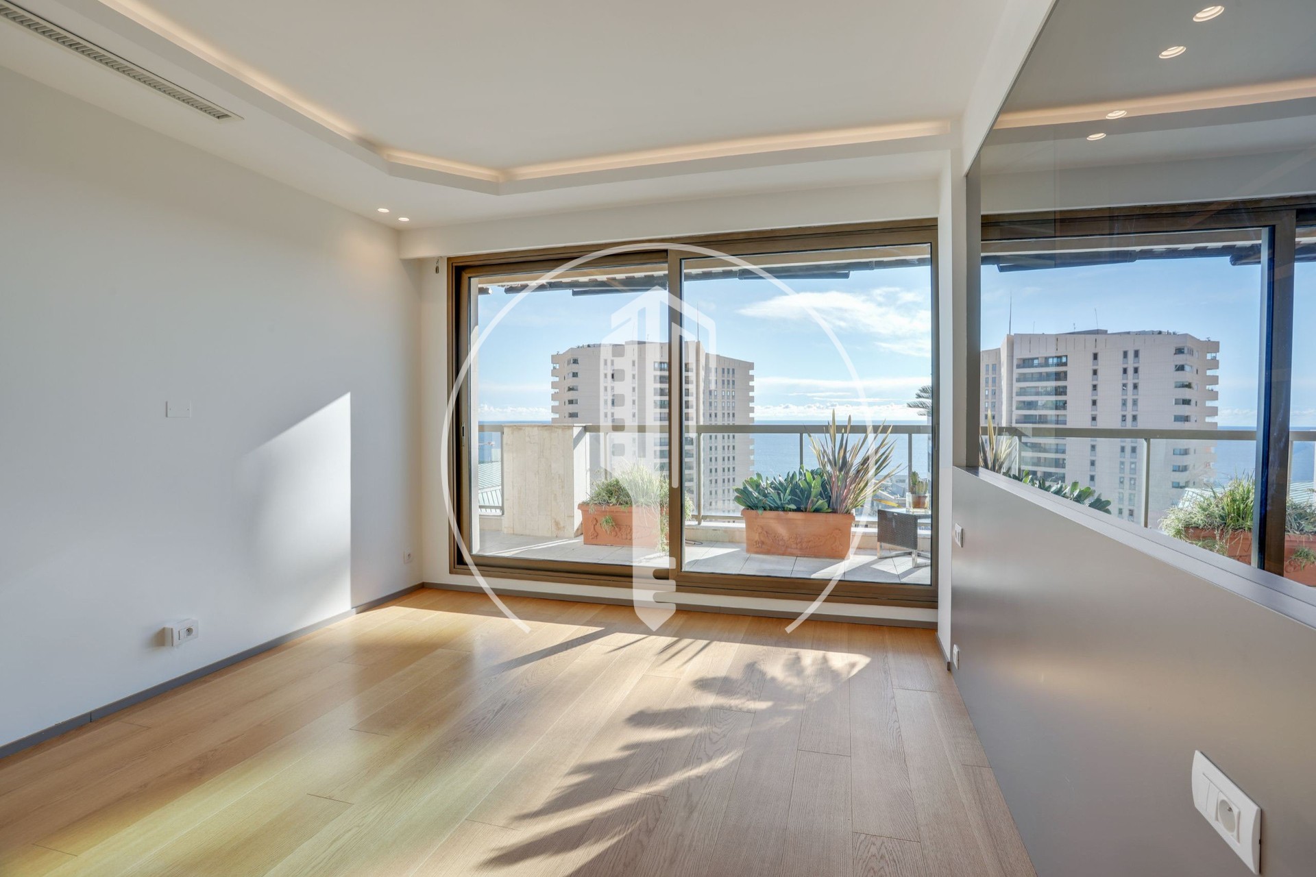 Situato nel quartiere del Carré d'Or, questo incantevole appartamento di 5/6 locali, situato ai piani alti della residenza, gode di una posizione soleggiata con una bella vista parziale sul mare.