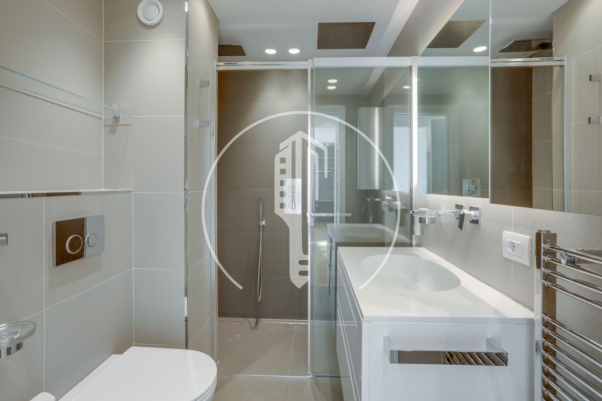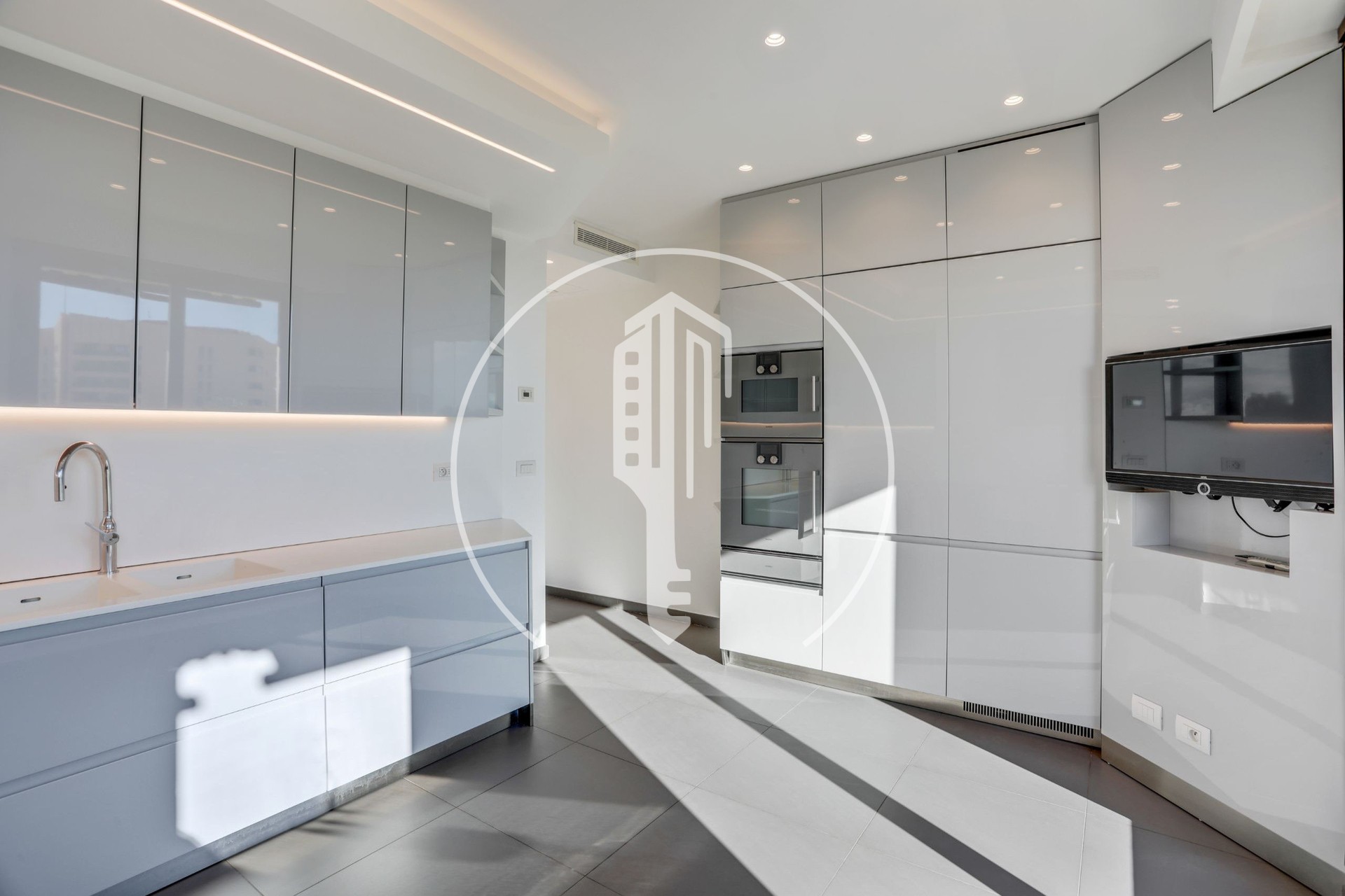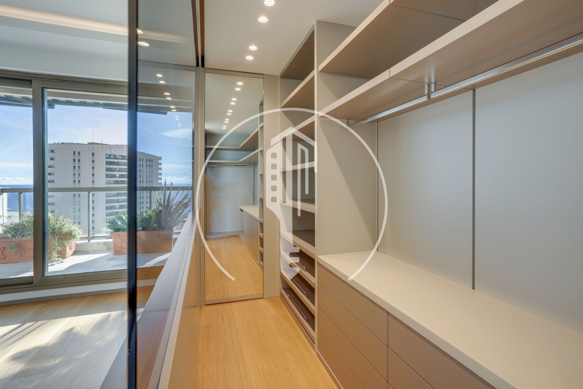 Si compone di un doppio soggiorno, una grande cucina attrezzata, una lavanderia, tre camere da letto ciascuna con il proprio bagno, una cabina armadio, una camera con bagno, servizi ospiti, numerosi spazi di stoccaggio e due grandi terrazze.
