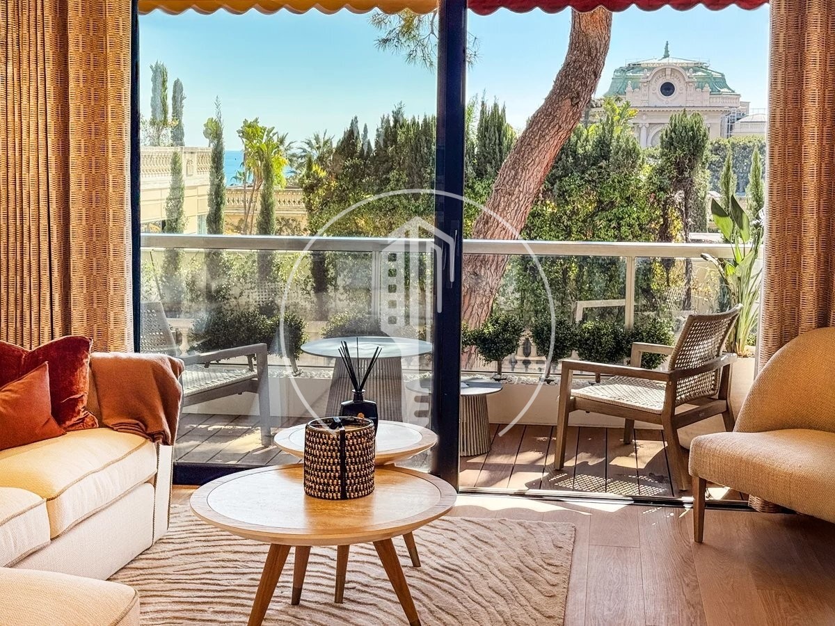 Davanti, il soggiorno e la cucina si aprono su una profonda terrazza con vista sul Casino de Monaco. Le due camere da letto si aprono su una seconda terrazza arredata.