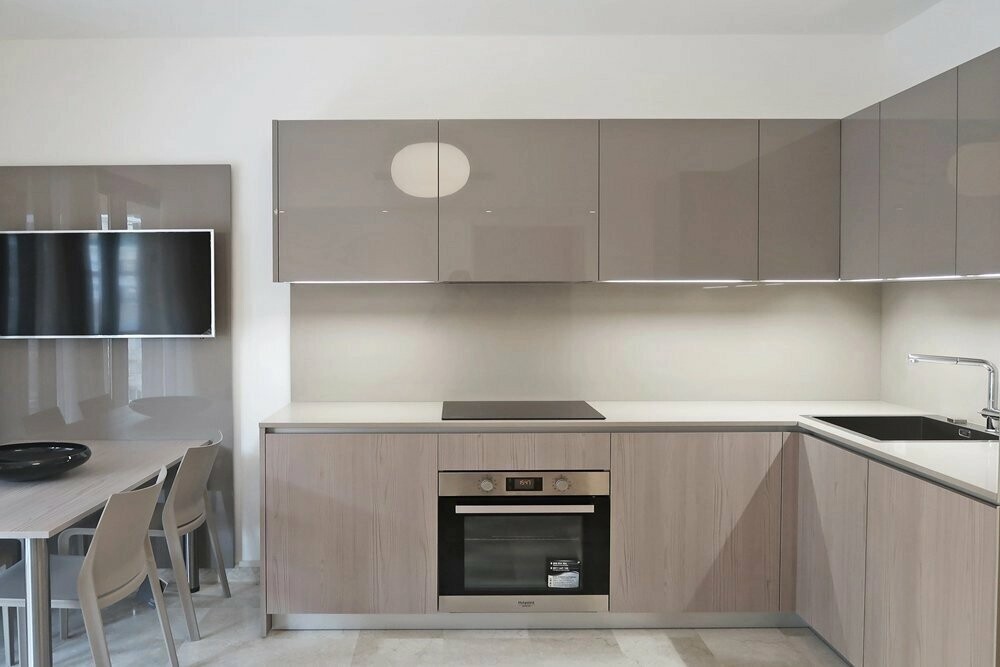 L'appartamento dispone di un atrio d'ingresso con armadi incorporati, un soggiorno con accesso alla terrazza, una cucina open space, una camera da letto spaziosa e un bagno in marmo.