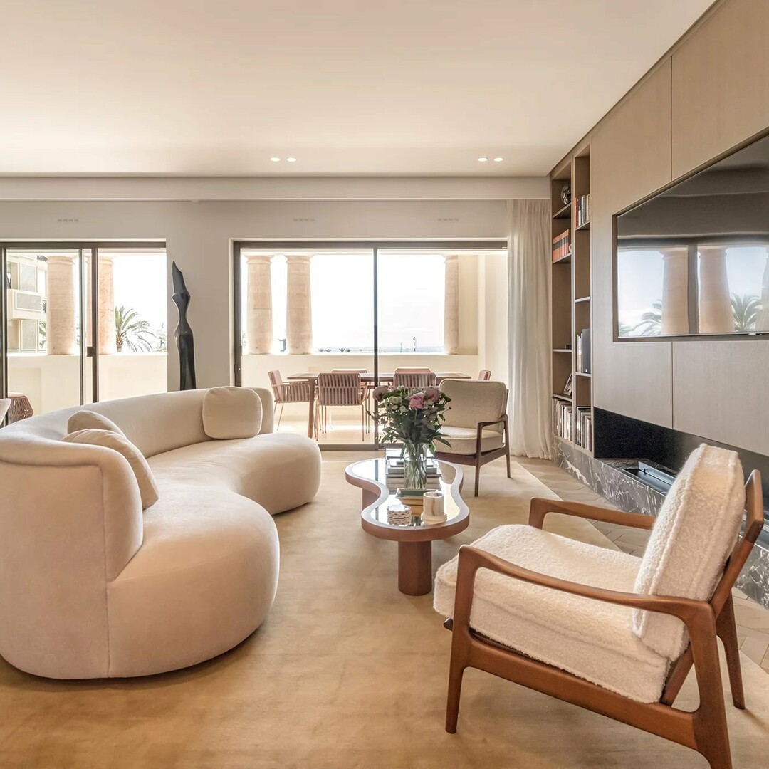 L’appartamento è composto da un ampio ingresso che conduce a un doppio soggiorno con cucina a vista completamente attrezzata, una camera padronale con bagno en suite, una cabina armadio e uno studio, due ulteriori camere en suite con bagni con doccia, un bagno per gli ospiti, nonché una profonda terrazza con una vista spettacolare sul porto di Cap-d’Ail.