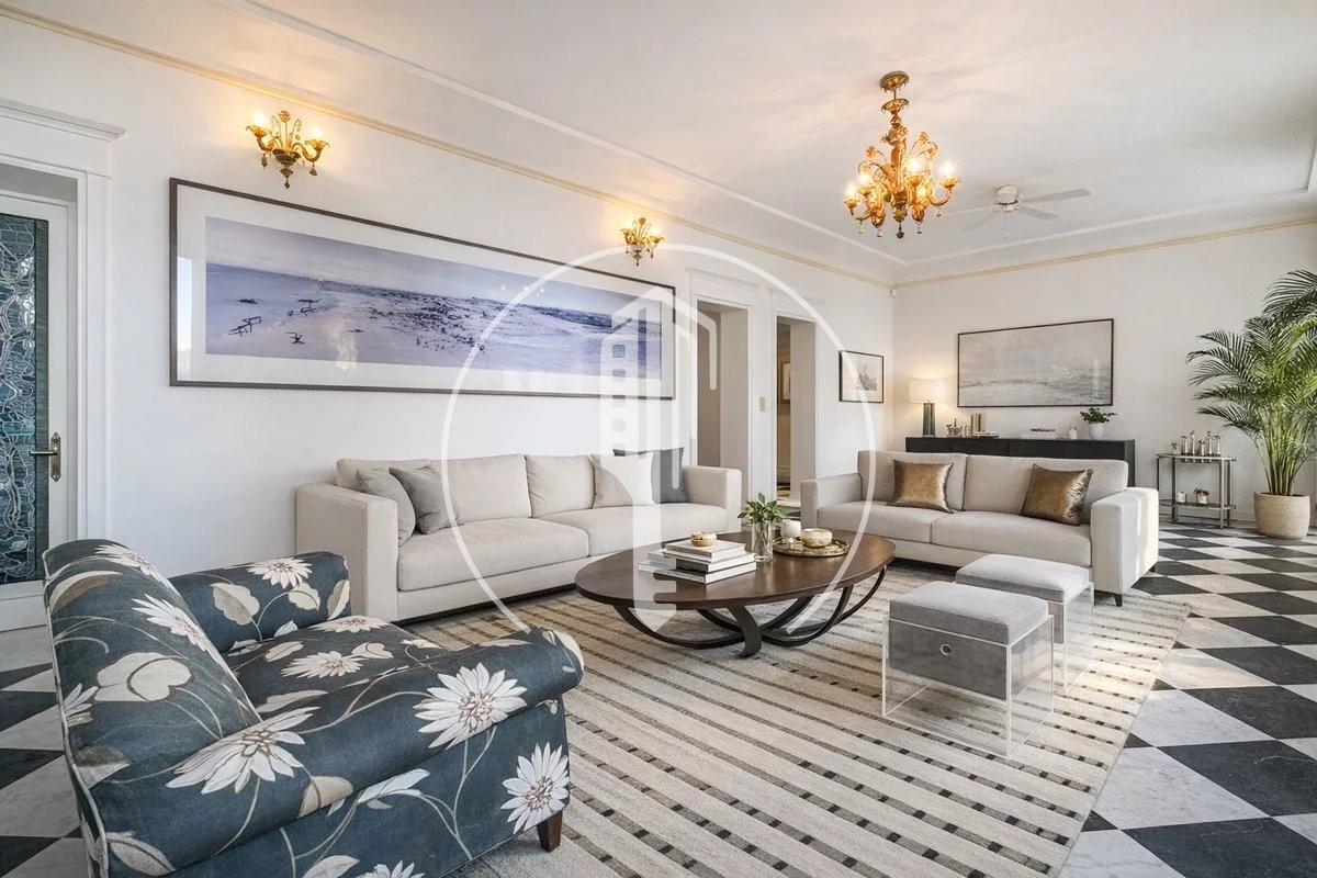 L'alloggio comprende un ingresso spazioso, una grande sala ricevuta e un soggiorno secondario che può essere trasformato in una quinta camera da letto o in un grande ufficio. Attualmente la proprietà offre un totale di quattro camere da letto con bagno privato, una cucina separata, un bagno per gli ospiti e una lavanderia. Una grande cantina (29 m2) accessibile direttamente dall'appartamento offre molte opzioni di stoccaggio.